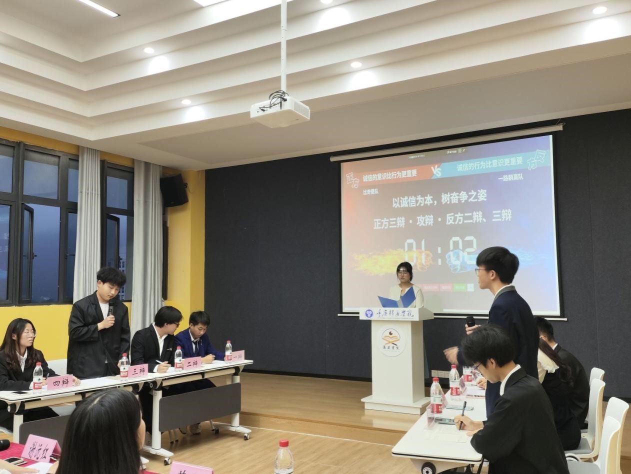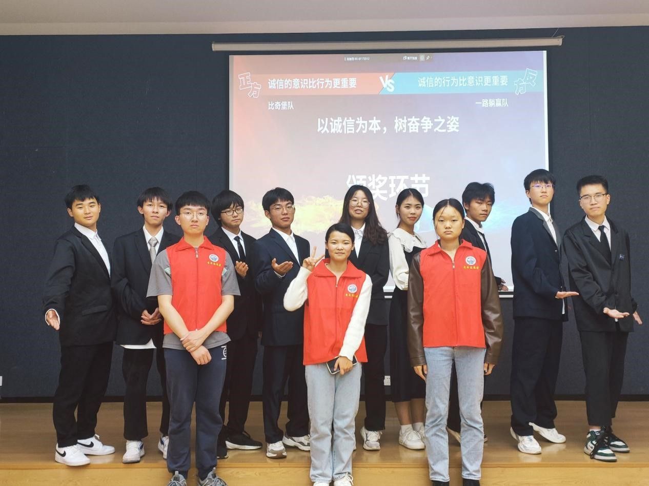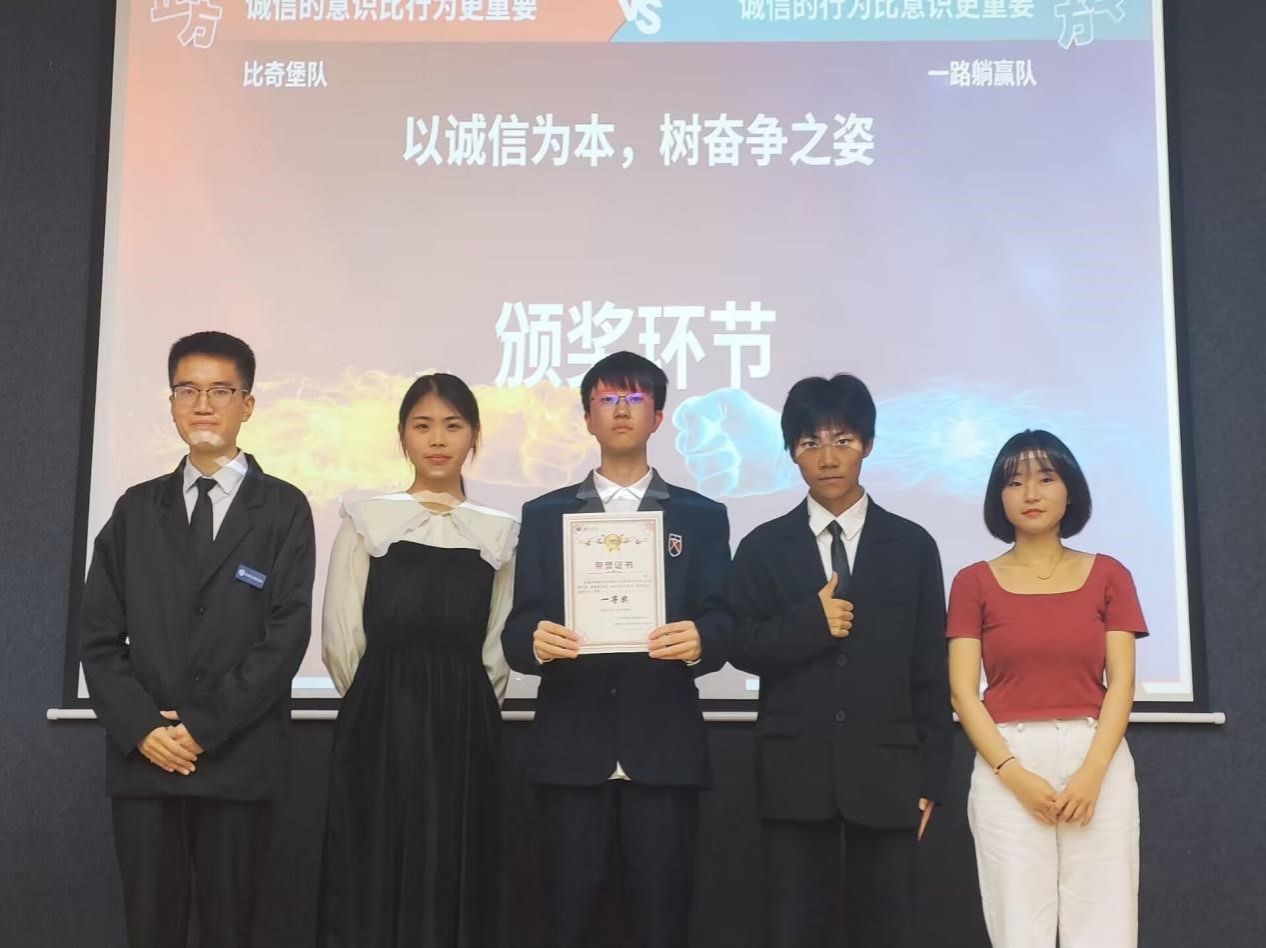 汇百家博思,沐思辨之风。本次“以诚为本,树奋争之姿”诚信主题辩论赛在整个过程中完整且激烈,从初到终,从浅到深,从表面到内心。一步步深入挖掘,追求事物的真理。所有辩手发言结束后,夏曦老师点评到:“双方辩手都很优秀,比赛的输赢并不重要,重要的是通过这场比赛能够带给自身的收获,并希望同学们能吸收本次经验,用于以后的辩论赛场上。”最后,执行主席宣布各位评委老师为优秀的辩手们进行颁奖仪式并合影留念。本次辩论赛,可以进一步提高大学生诚信意识,营造良好的诚信氛围,引导大学生树立正确的社会主义荣辱观,推动诚信校园建设,培养大学生诚信的品格,更好的传承中华优秀传统美德,同时提高同学们的思辨能力和语言组织能力。一个人不会因为一点利益就一无所有,却会因为丢失诚信就彻底失去他人的信任。愿我们都能做个有底线,有原则,讲诚信的人,优秀的品德才是一个人最好的名片。