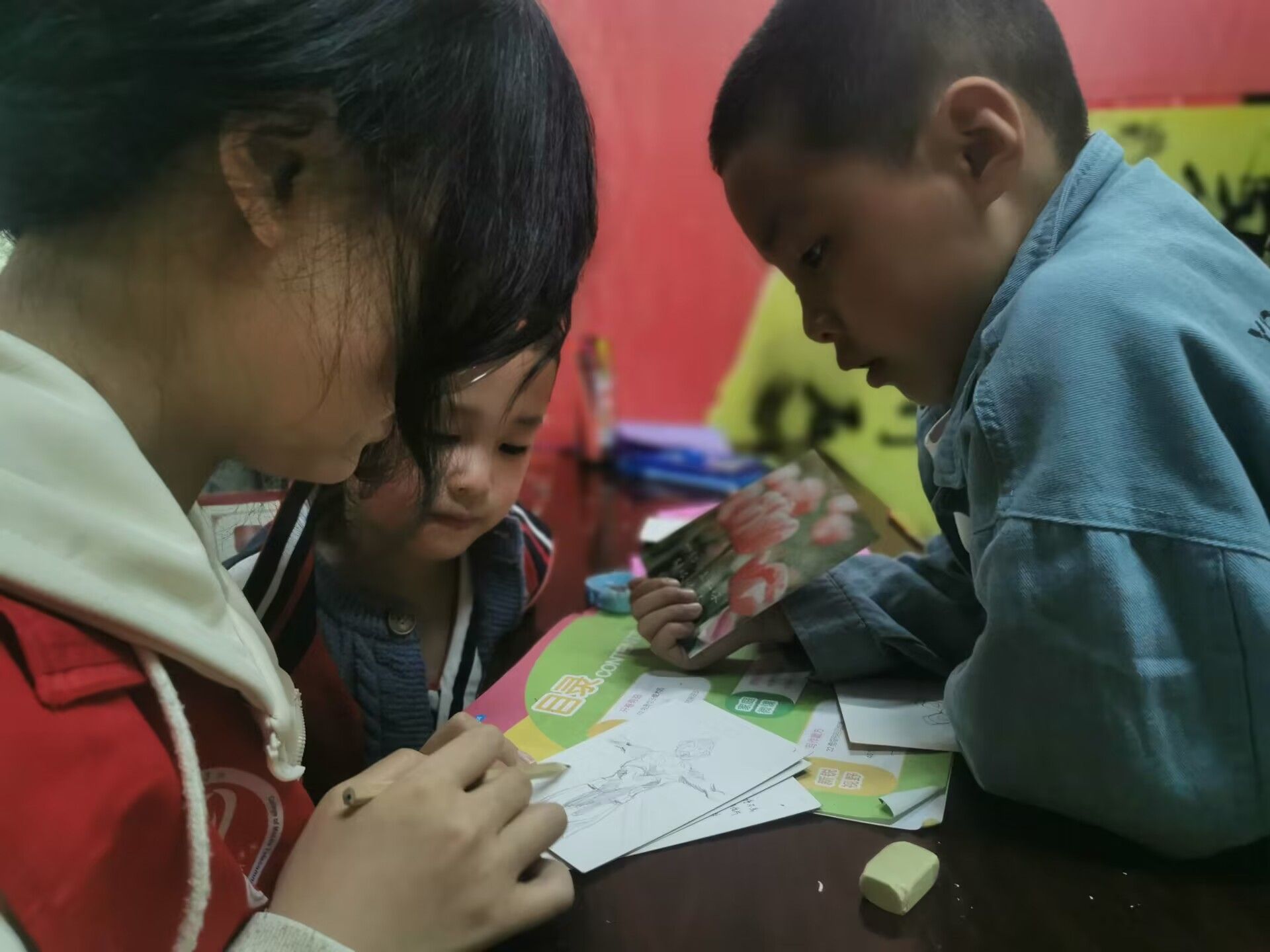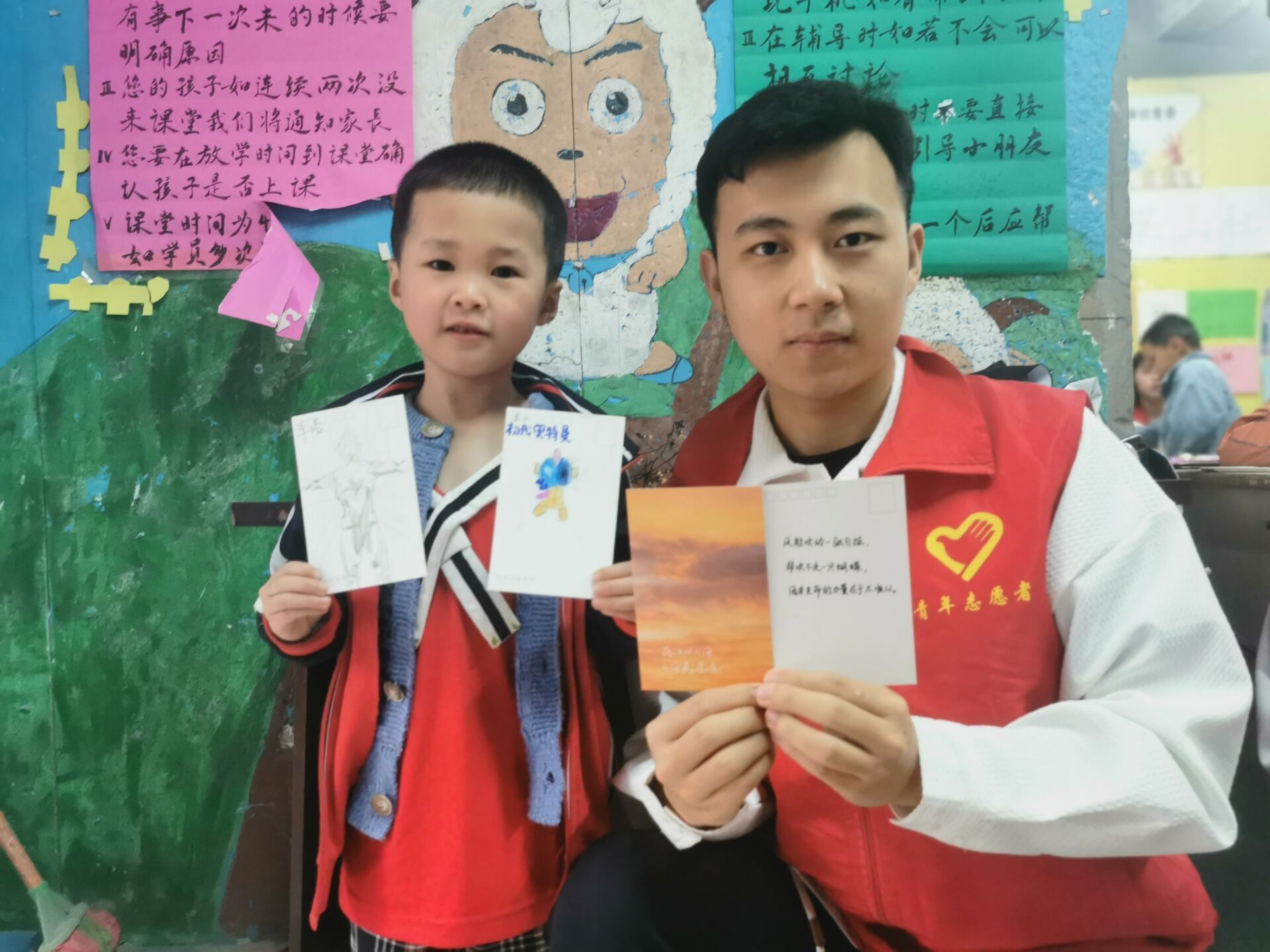 用心传志愿,以笔绘精神。志愿者和小朋友们用明信片绘出他们心目中的红军战士们过草地翻雪山的场景。革命先辈们用他们的鲜血浇灌出如今的繁荣富强,小朋友的明信片上都绘着一抹红,是长征红、是志愿红、更是中国红。作为当代青年、作为祖国的花朵,延续红色基因、传承红色血脉是是使命,让红色文化在这盛世中绽放出最美丽的花朵。