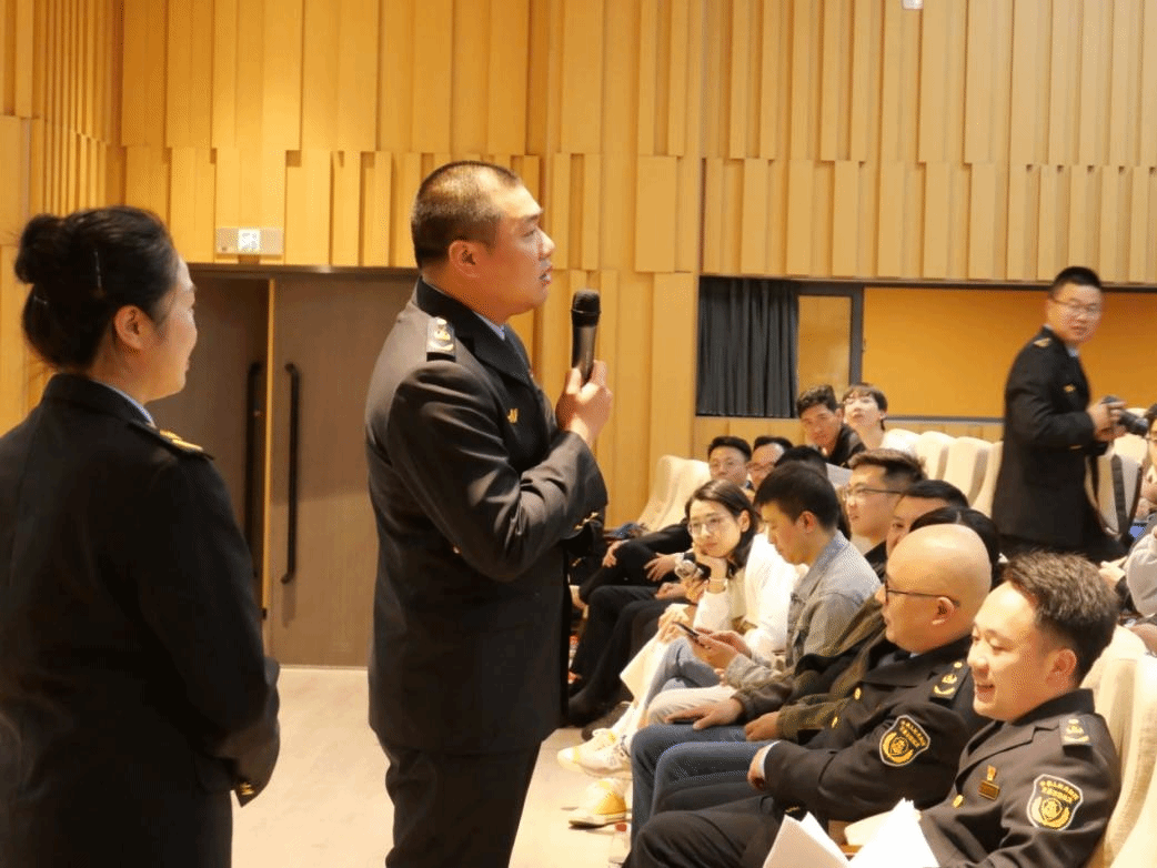 在有奖问答环节,同学们积极举手回答问题,现学现用,与重庆市合川区交通运输综合行政执法支队警官热情互动,回答正确的同学都能收到精美的礼品,通过有奖问答形式,加强同学们对于交通运输执法知识的巩固。问答结束后,现场同学们也填写了调查问卷,以此反映同学们对交通运输执法知识的知晓率、支持率、参与率和满意度。