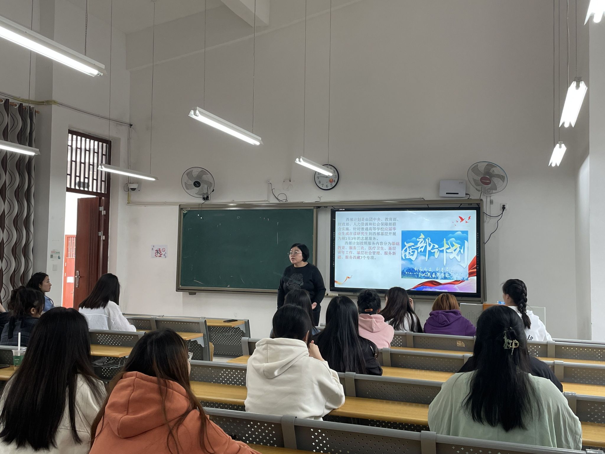 西部计划是、三支一扶、特岗教师都是国家为了响应“到西部去,到基层去,到祖国最需要的地方去”口号而做出的行动。它会在志愿者以后的工作上是一个加分项,同时也会让志愿者享有更多的社会实践经验。西部计划鼓励大学生扎根基层,服务社会;鼓励更多的同学投身到祖国建设当中去,也希望能有更多的大学生能将西部志愿者的精神传承下去。纪老师的此次讲解让大家对西部计划志愿者的报名要求都有了一个初步了解,同时也了解到了许多相关的国家政策。