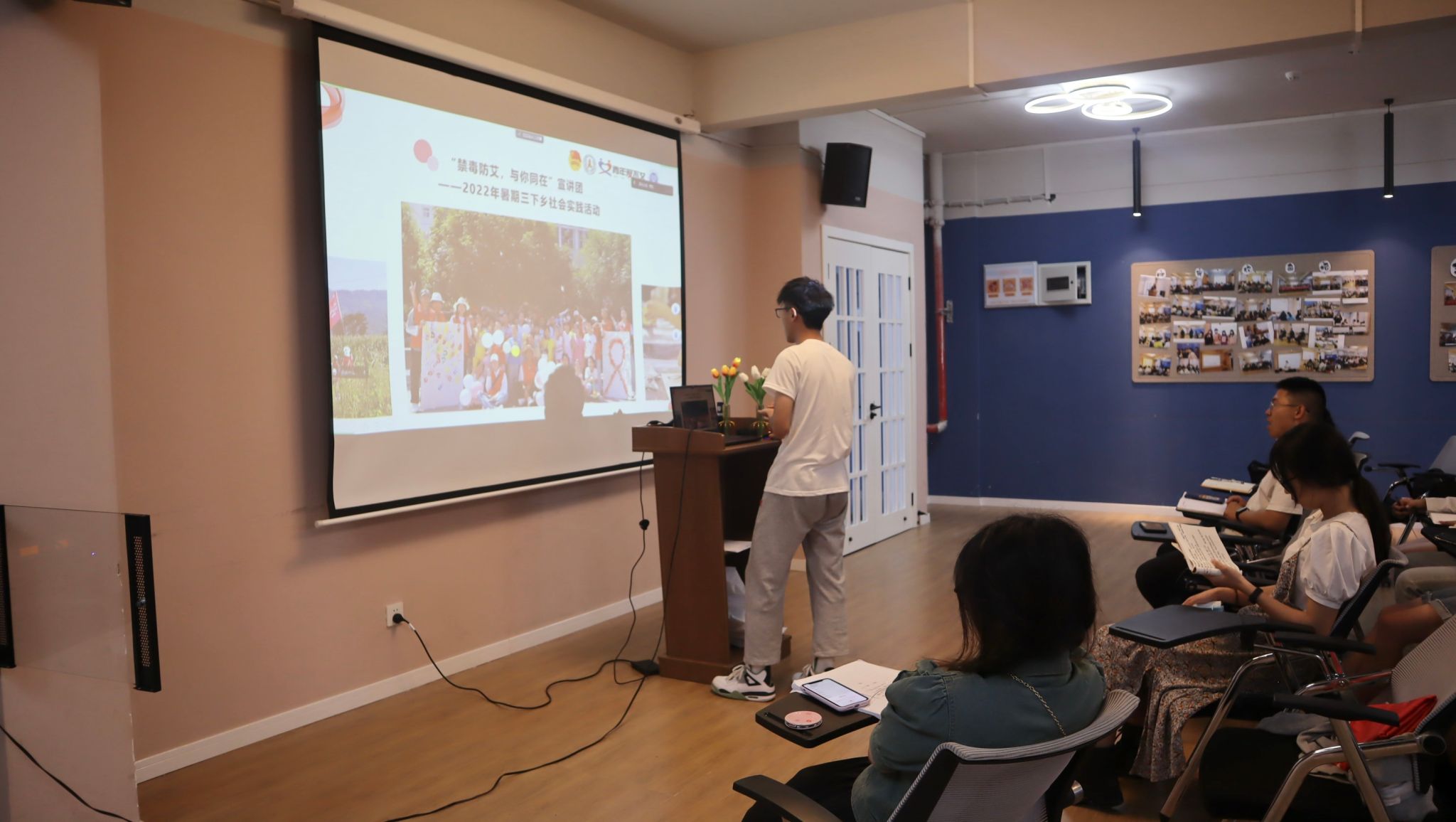 接下来,由天使关“艾”志愿服务专项支队支队长江文豪同学分享了在宣传“知艾、防艾”中的一些故事。他提出了“2023年中国性病艾滋病防治协会高校防艾基金申请书”,这是重庆移通学院天使关“艾”志愿服务专项支队申请的“天使予爱,青春无艾”艾滋病与性病预防健康宣传教育项目,并入围重庆市高校基金项目之一。讲述到希望通过这个项目能唤起人们对艾滋病人的同情和理解,提高对艾滋病的认识,共建无“艾”社会,共护无“艾”青春。