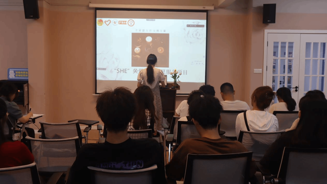 最后继续由淬炼青协杨茜同学讲解“SHE”关爱女性志愿服务专项支队关于关爱女性的活动项目举办的方式,以及在举办活动过程中的感受。她希望通过这些活动能让社会上的人能够更关爱、尊重、理解、体贴女性。