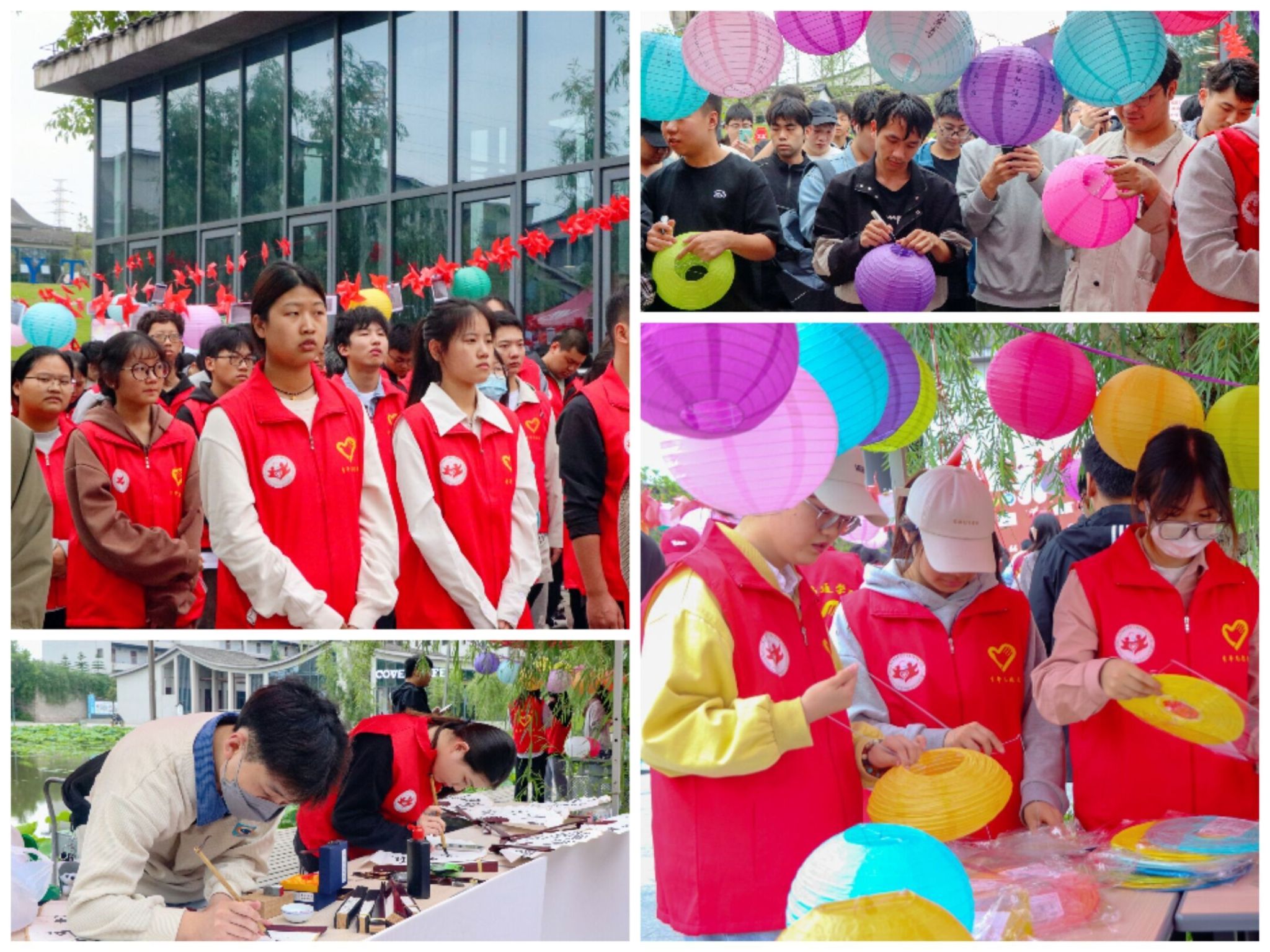 活动最后,老师和同学们共同参观优秀作品展示区及联合书法与美术协会共同打造的折扇、灯笼题诗活动体验区。青年志愿者活动是一项平凡又伟大的事业,同学们提笔写诗,将对志愿者们的赞美寄托于一把把折扇和一盏盏灯笼之中。