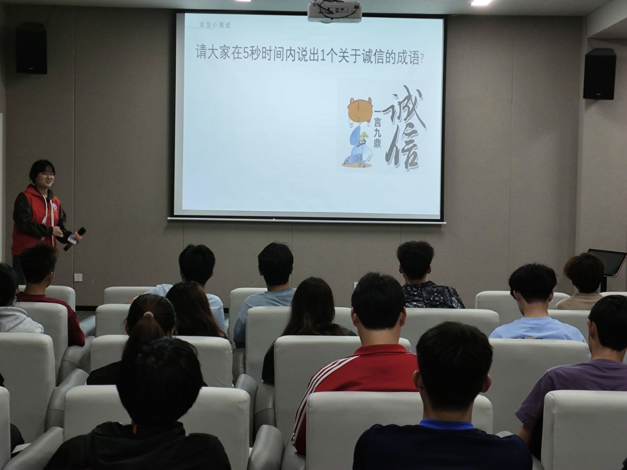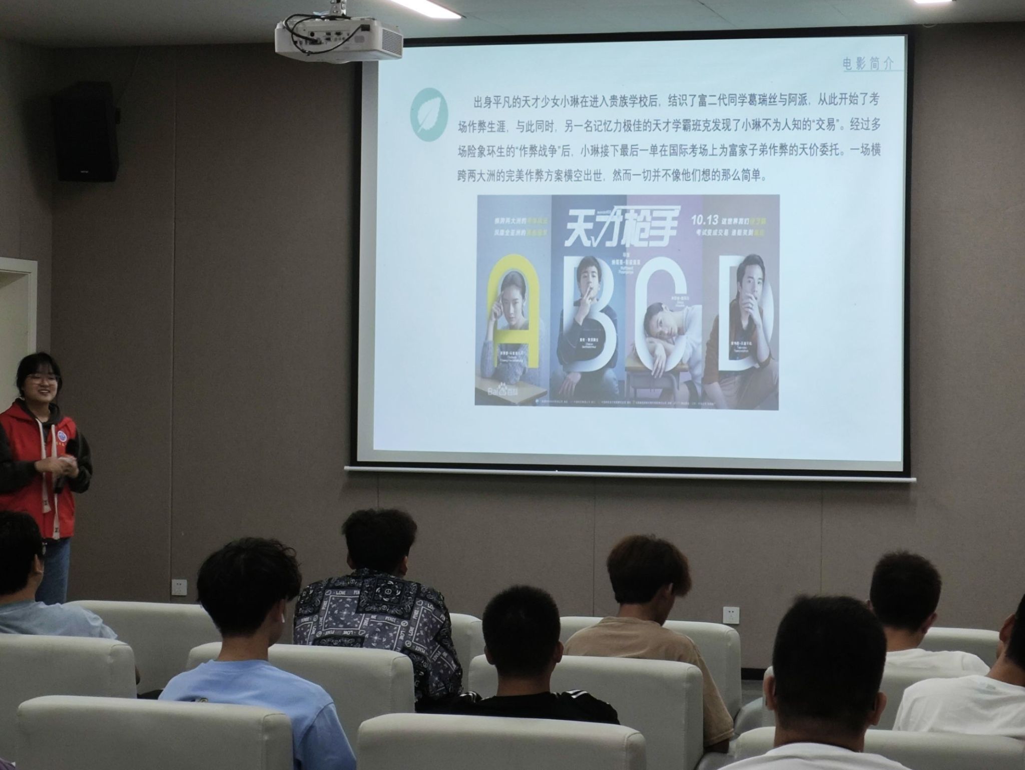为响应学校开展诚信教育主题活动的号召,推进落实校园立德树人的育人工作,增强同学们的诚信观念和社会主义核心价值观,助力营造诚信为本的校园文化氛围,宣传诚信考试的重要影响。守望诚信志愿服务专项支队于5月10日19:00-21:30在瀛溪书院潜台词影音室开展主题为“内诚于心,外信于人”的观影活动。通过观看《天才枪手》电影,PPT讲解,诚信小游戏等多种方式讲述诚信故事,传达诚信精神,培养诚信品质。