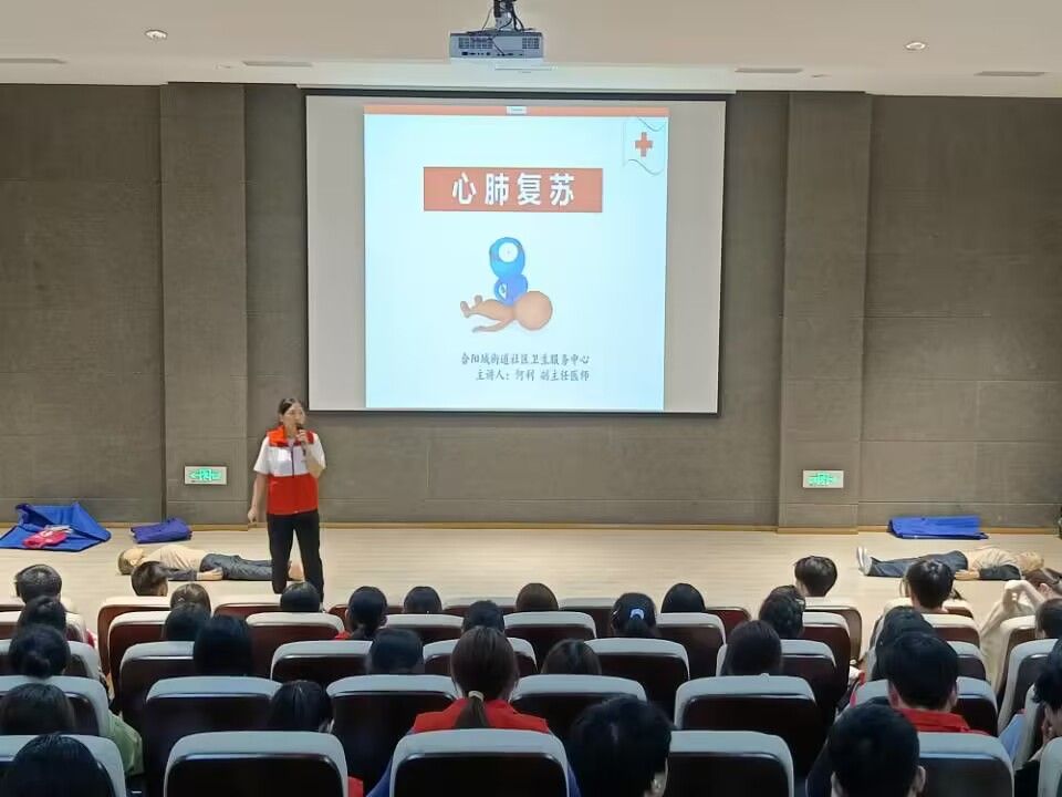 本次培训会邀请到合阳城街道社区卫生服务中心的副主任医师何利老师以及刘小娇,刘婷三位老师为同学们带来心肺复苏的相关培训和实操演练。培训分为理论教学和实践操作两个部分,首先介绍心肺复苏的基本原理、步骤、特别要点等。