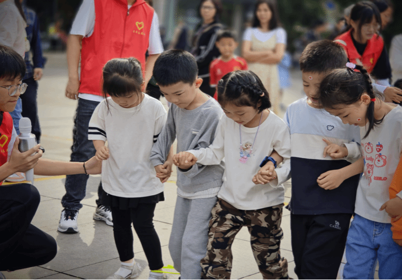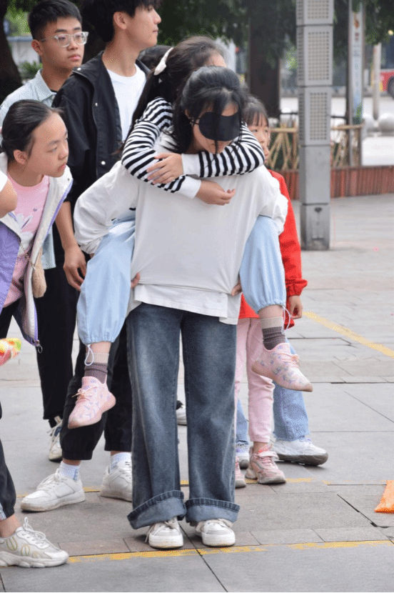 “大朋友小朋友们,你们准备好了吗?三、二、一!”这一次游戏中,家长需将双眼蒙上,而孩子将成为家长的眼睛,指引着前进的方向。不少家长们内心充满了紧张,问其原因,一位家长告诉志愿者说道:“这是他们父子两个第一次这么亲近过。”这便是我们本次志愿活动的目的,让小朋友体验到亲情的珍贵,让家庭枢纽联系得更为紧密。小时候,父母教会我们穿衣吃饭,而现在我们逐渐长大。光阴荏苒,岁月如梭,待父母老去,我们也将成为他们的眼睛,他们的拐杖。像他们小时候教给我们的那样,我们也要充满耐心,将新事物一遍又一遍不厌其烦地教给他们。