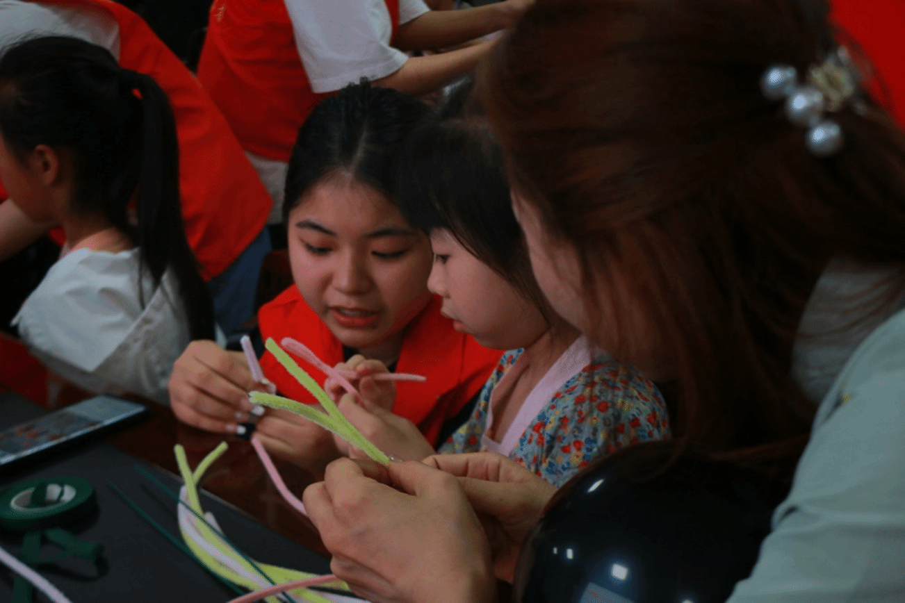 盛开的不是花,是我对母亲的爱。“巧手妙作,扭花献爱”活动志愿者引导小朋友们为妈妈做一朵承载感恩与美好祝愿的扭扭花,用实际行动回馈母亲的无私。志愿者拿出一根根扭扭棒,细心地讲述做法,手把手教小朋友们制作,在他们的引领下,小朋友们很快就制作出一朵朵精美的扭扭花,并将亲手做的花朵献给自己亲爱的母亲。生活需要仪式感,因爱而感动,为爱而行动。一朵永不枯萎的花正如我们对母亲的爱一样永不凋谢,小朋友借一朵花表达对妈妈浓浓的爱意,为妈妈送上最美好的节日祝福。