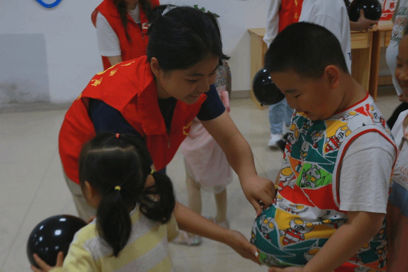 十月怀胎,一朝分娩,高高隆起的肚子,是幸福的延续,也是对母亲的考验。保护小宝宝活动让小朋友们将充满气的气球放在衣服里,模仿有小宝宝的样子,并让小朋友们进行拾取物品竞速比赛,在拾取物品的同时保护小宝宝。活动结束后,志愿者借此告诉小朋友母亲怀孕的不便与辛苦。百遍的说教,不如一次实际的感受和体验,该游戏让小朋友更加懂得自己母亲为生育他而付出的努力,培育他们对母亲的感恩之心。