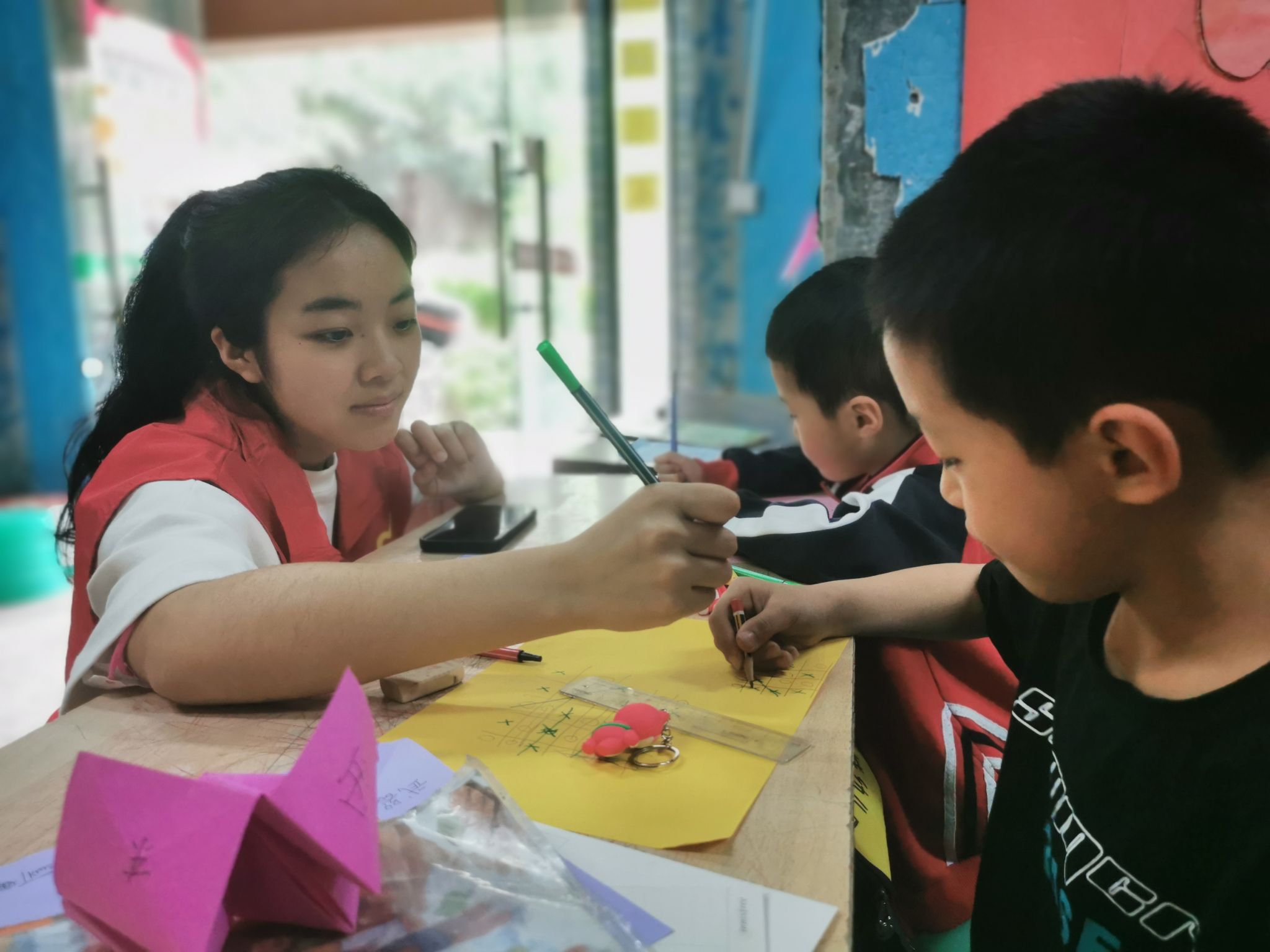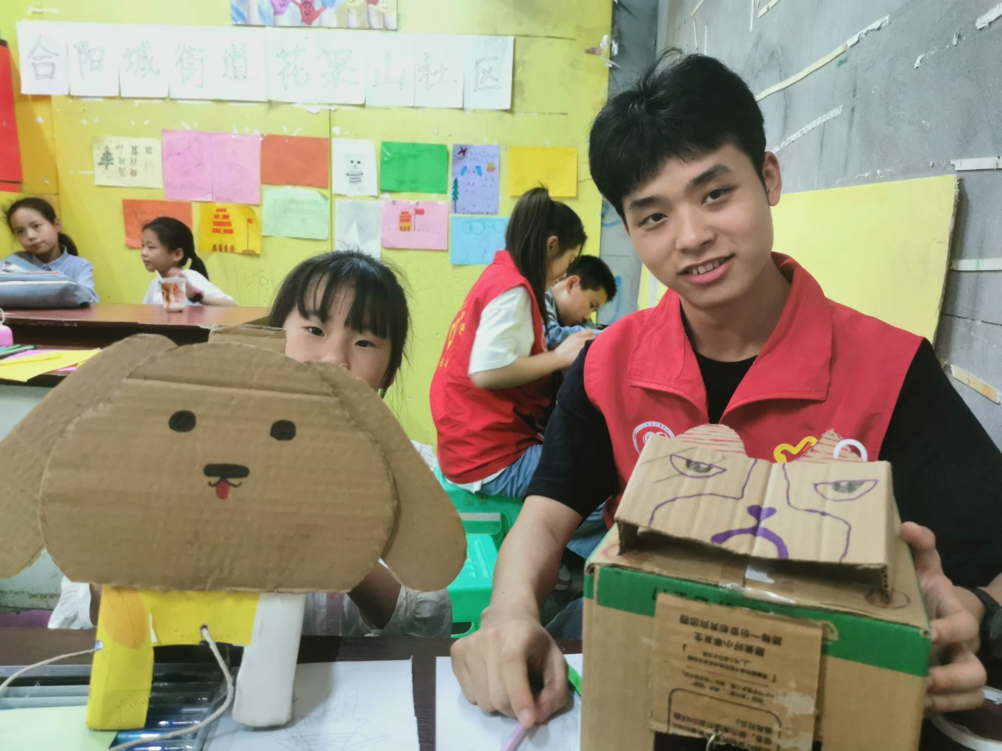 为将环保意识厚植在小朋友们的心中,引导小朋友们树立资源循环再利用和节能环保理念,志愿者们用收集到的快递纸盒,带领小朋友们制作纸盒小狗,在实操中增强小朋友们的动手能力。小朋友们充分发挥想象、积极动手实践,在环保小狗上涂自己最喜爱的颜色,红色、黄色、蓝色……在志愿者的陪伴下,一抹抹色彩都填充进了小朋友们的内心世界。