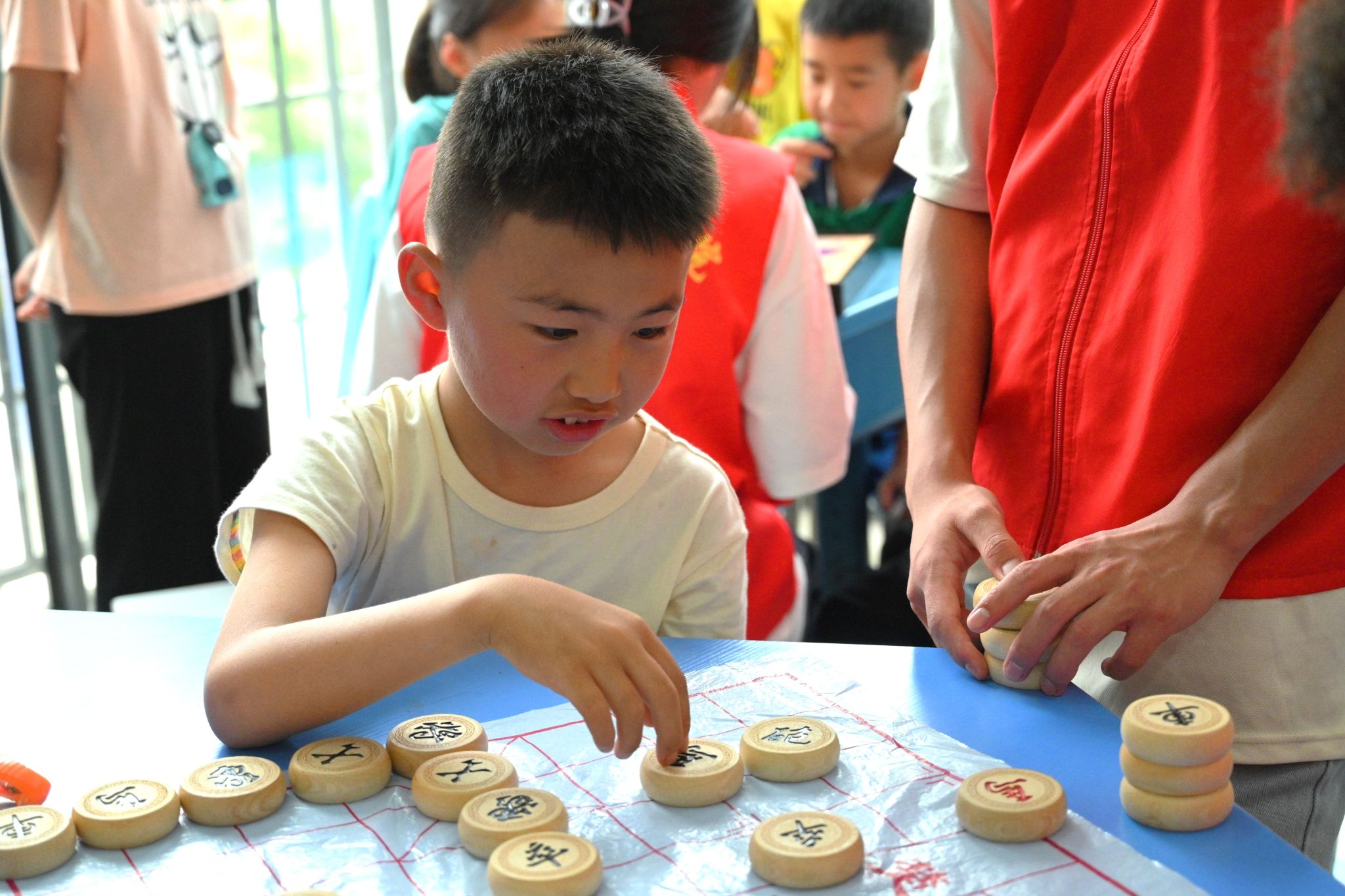 实践是检验成果的最好方法。教给小朋友们围棋、象棋、跳棋的下法和规则之后,让小朋友们互相博弈,对于那些有基础的小朋友则可以挑战我们志愿者。博弈不仅能够锻炼小朋友们的思维力、对局势的把控力,还能够增强小朋友们的注意力。比赛中各位小朋友们尽展其能,兴奋处,斗志昂扬;低落时,挣扎不弃。小朋友们在博弈的过程中互相切磋,不仅仅切磋了棋艺,也让他们进一步的了解了中华文化的博大精深。