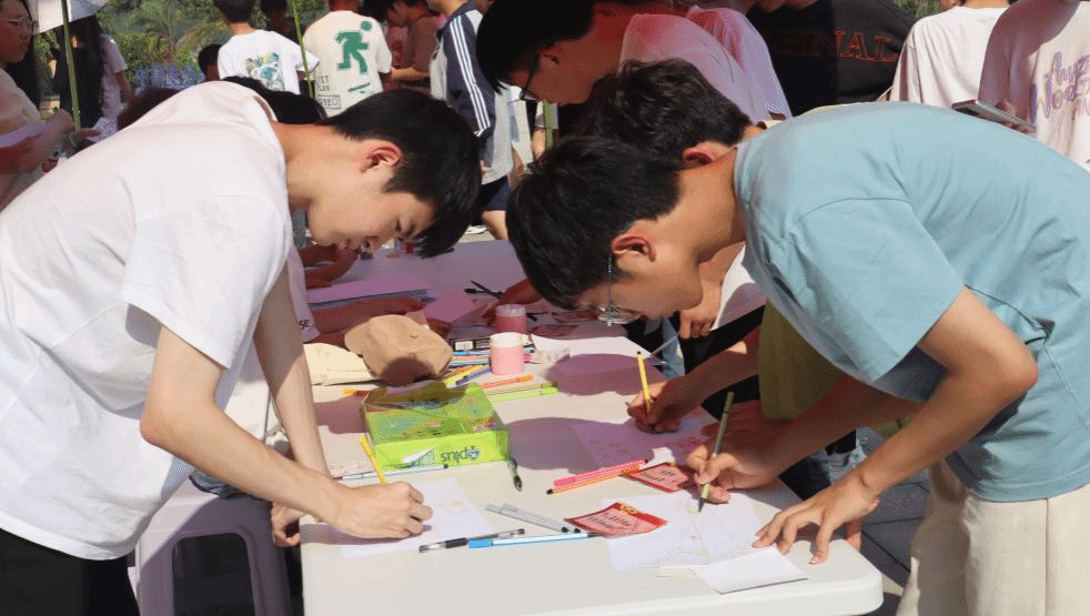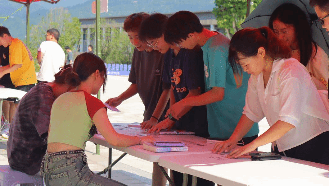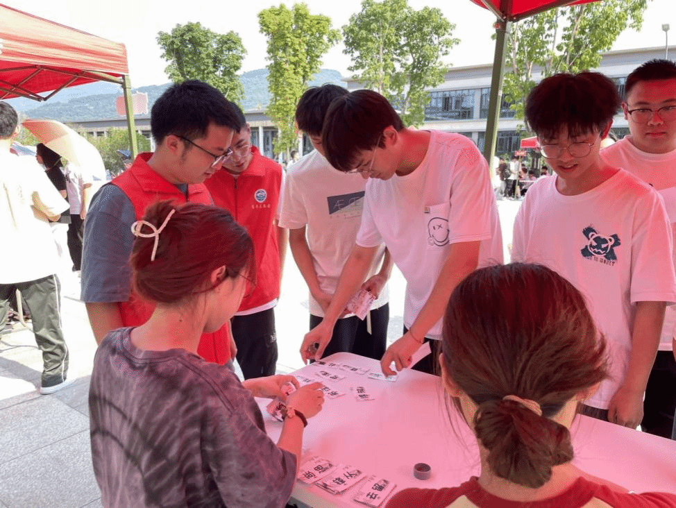 有趣的活动不断吸引着现场的同学们,例如“浪漫的诗歌裁缝”、“以笔绘诗”、“万古长青”、“签上作诗”,“记忆的头脑风暴”等五个活动,在弘扬“五四”精神的同时,也弘扬和传承中华优秀传统文化,让青春的热血在古老的诗词里流淌出不一样的风采。
