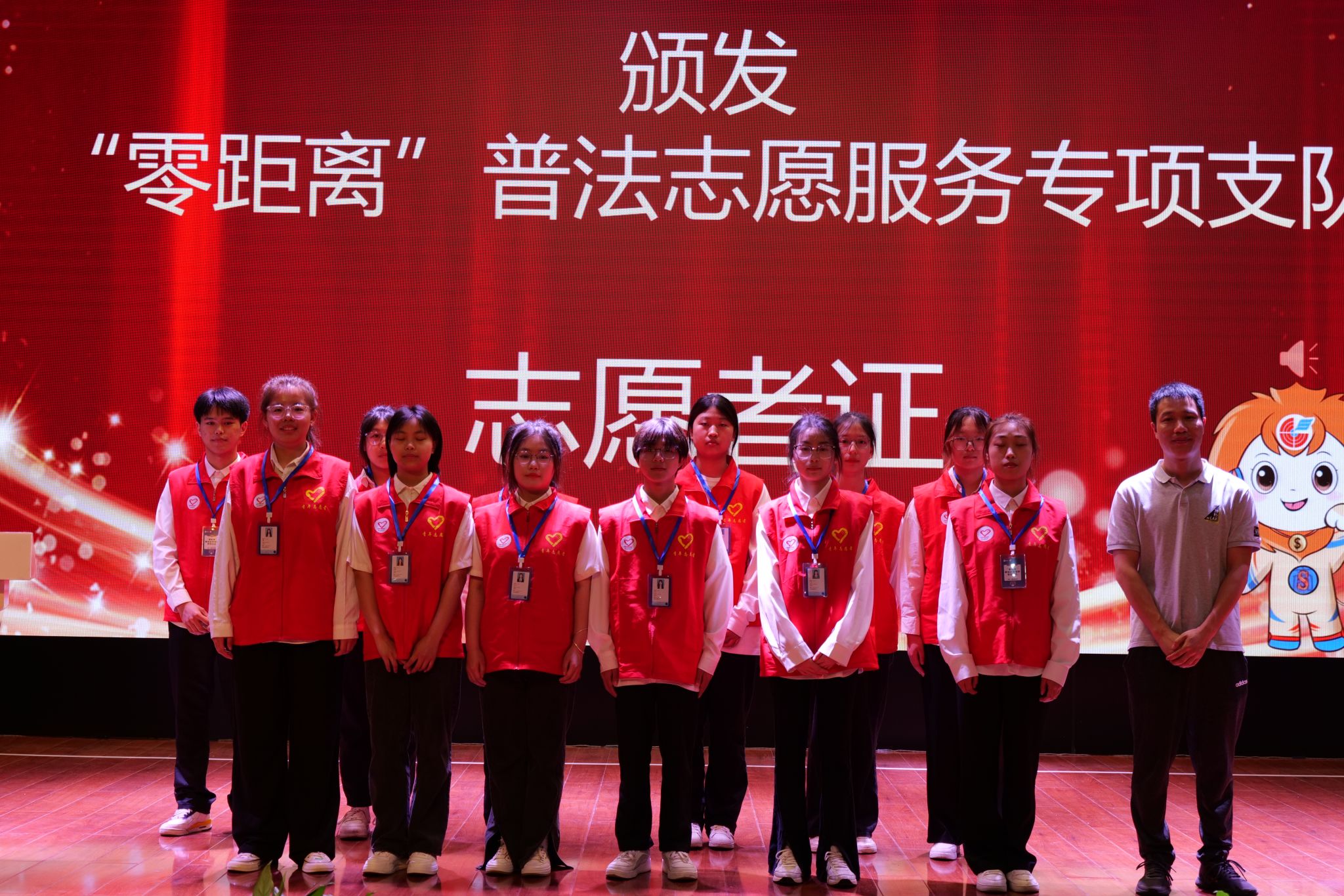 成立仪式上,青年志愿者联合会指导老师刘月对普法专项支队做出情况介绍;淬炼·国际商学院团总支书记黄新燕老师宣读“零距离”普法志愿服务专项支队成员名单;学生处处长陈帅为普法支队成员授予志愿者证。