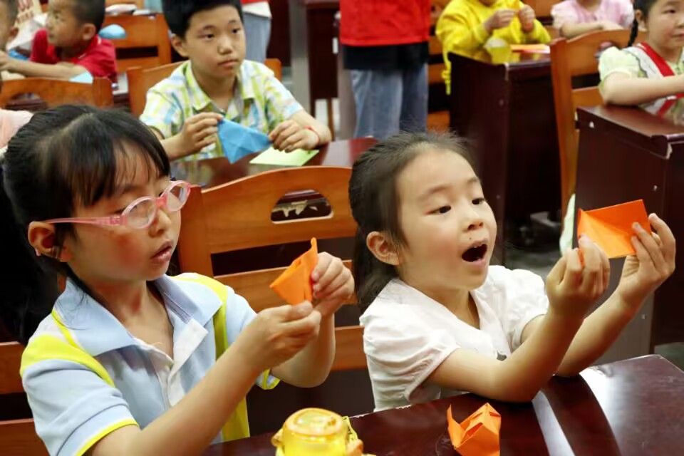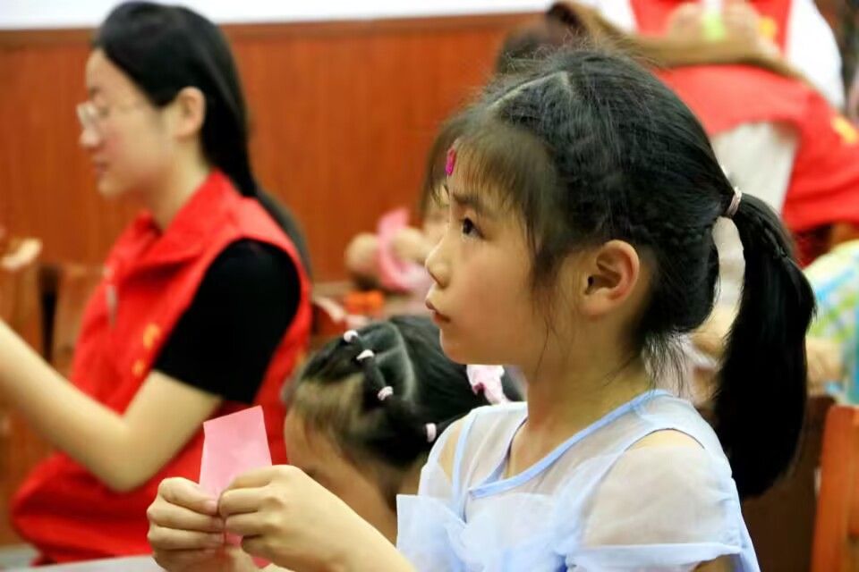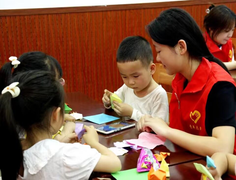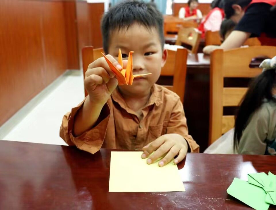 小小折纸,传递着孩子们对劳动不一样的感受。这一活动在吸引小朋友的注意力的同时,也培养了孩子的动手动脑能力、记忆力、想象力、创造力。在志愿者们的协助下,一张张卡纸在小朋友的手上变成栩栩如生的千纸鹤、爱心...在大家的欢声笑语中沉浸式体验折纸带来的乐趣,拉进了志愿着与小朋友之间的距离,同度过了美好的活动时光。