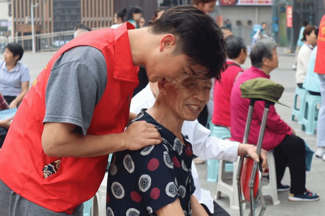 与此同时,活动现场已经吸引了很多的老人驻足,志愿者们热情的搀扶着老人坐下,“婆婆坐,累不累,我给您按按肩吧。”在得知老人的肩膀时常不舒服后,志愿者轻声细语的向老人聊着,放缓手上的动作,寻找着老人最舒服的姿势为老人放松肩部。老人也关心的询问着同学们的学习和日常生活,拉着家常,气氛温馨愉悦。在与老人们的交谈中志愿者也感受到老一辈对年轻一代殷切的希望和关怀。