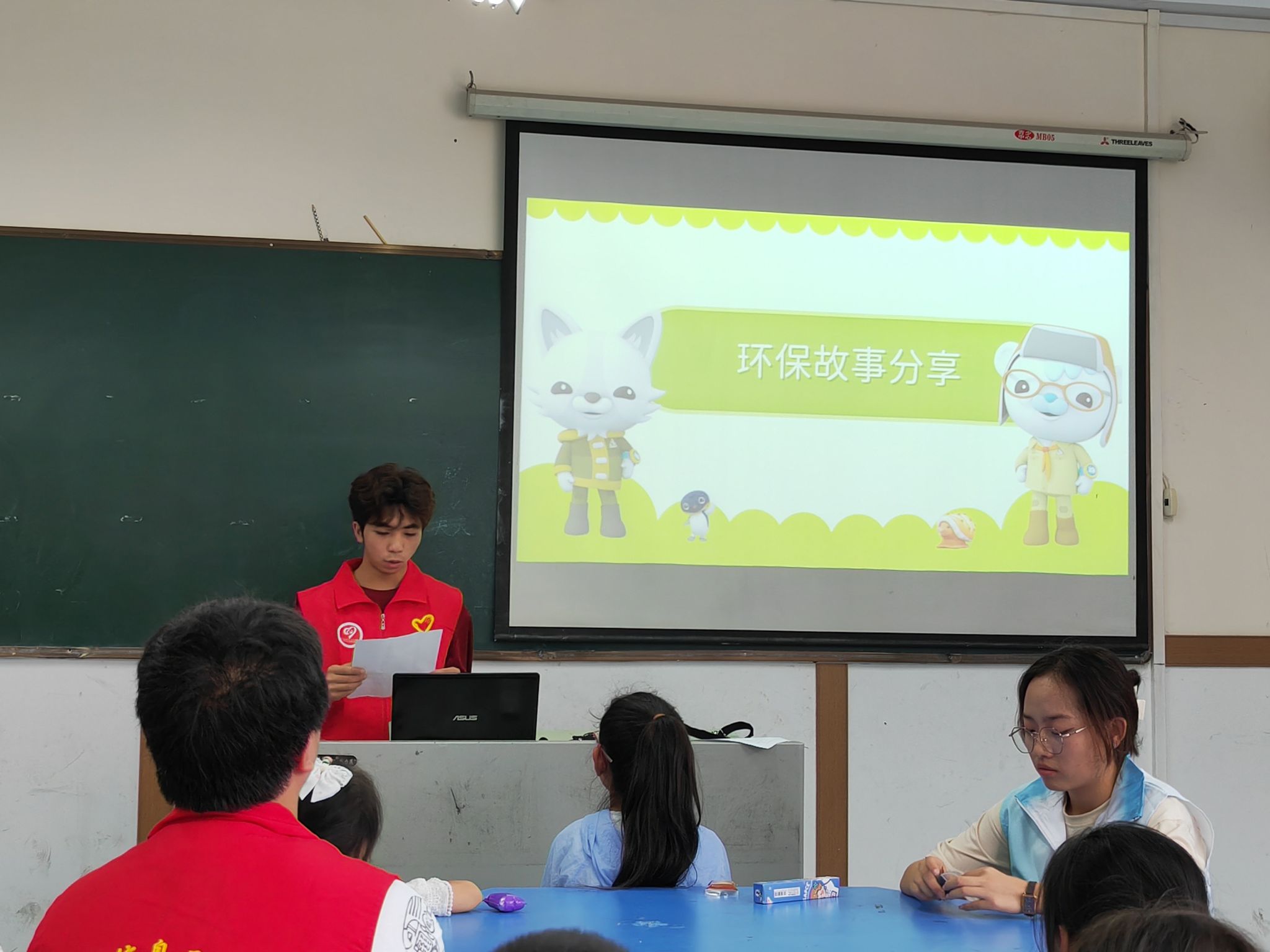 志愿者们为大家准备了精彩有趣的环保故事,志愿者依次上台给大家分享自己搜集到的环保故事,小朋友们听得津津有味,积极勇敢的发表自己的见解与看法,其中一位小朋友说到“我觉得哥哥姐姐们讲的故事很有意义,我们也要时刻注重环保,爱护环境人人有责”。