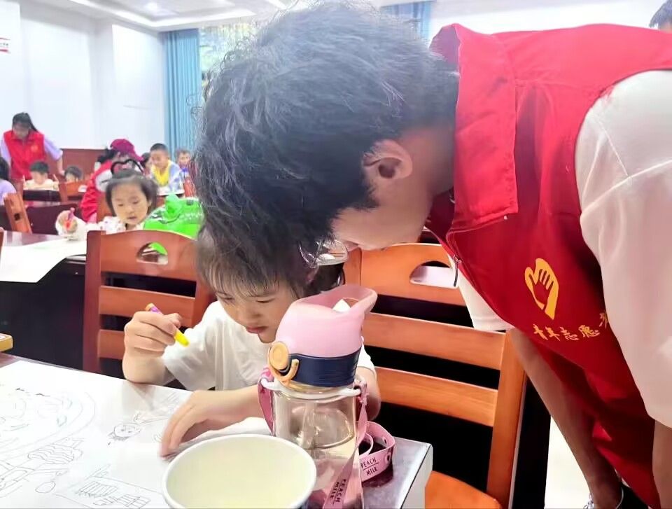 遇见,是故事的开始;相处,是温暖的篇章;陪伴,是简单的告白;成长,是故事的延续。一场心与心得交流悄然开启。那是志愿者们身穿红马甲有序的来到活动现场井然有序的画面;也是开展“梦想课堂”志愿服务活动,带领小朋友们走进绘画小世界的暖心画面。