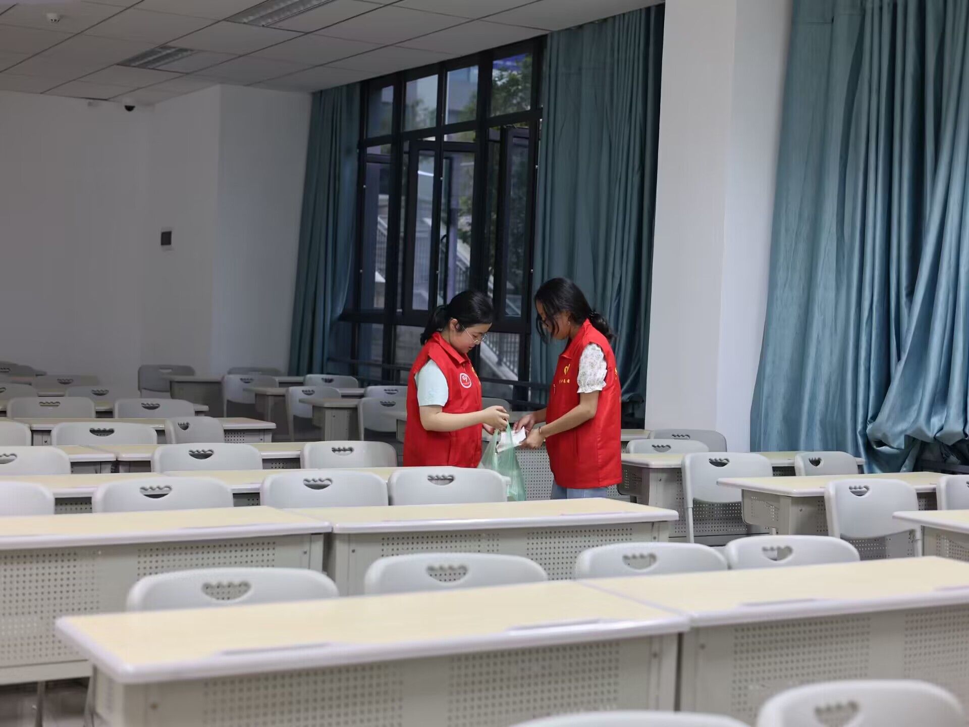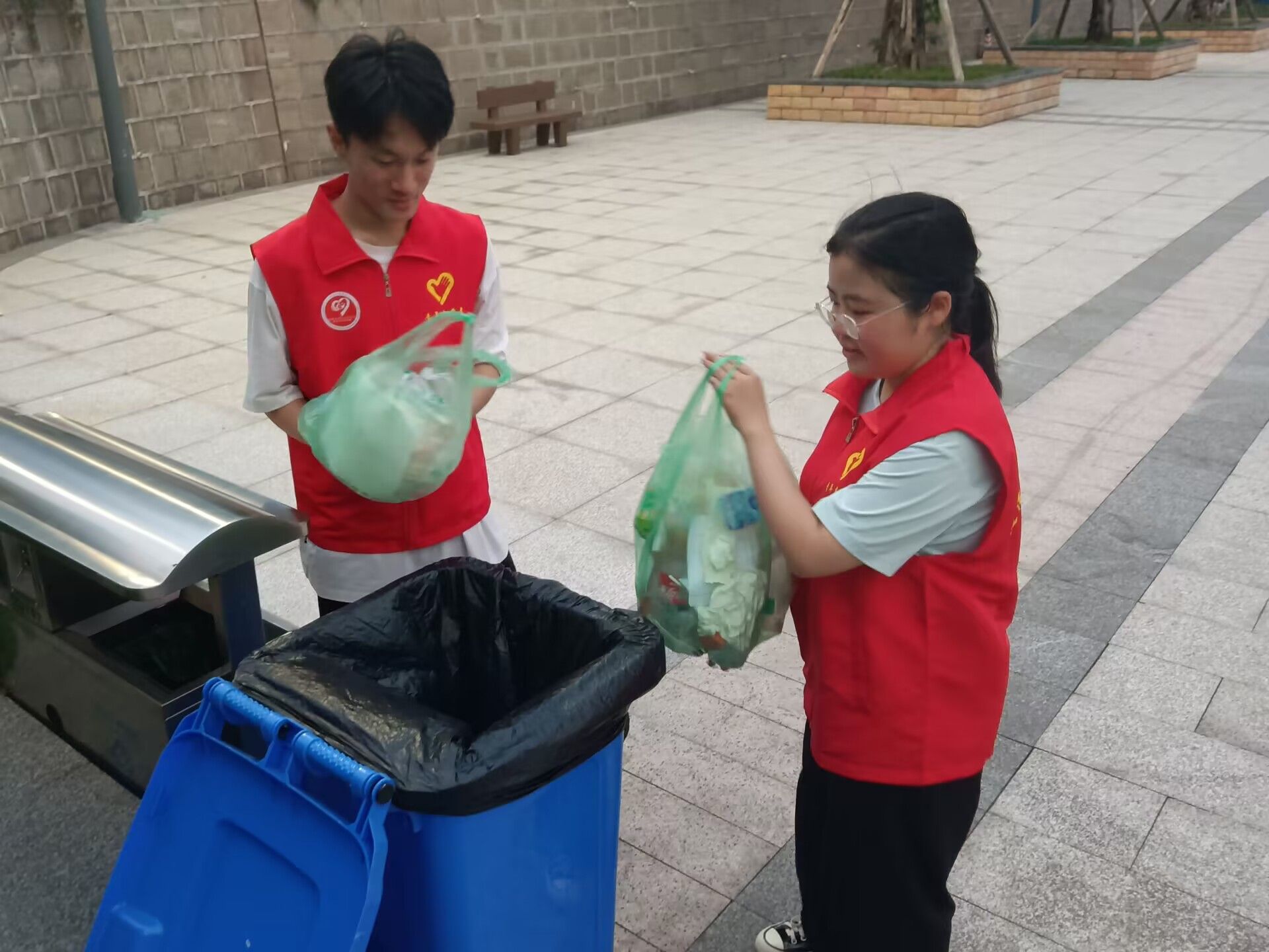 沿逆时针方向“扫荡”操场,将废纸,果皮和塑料瓶进行分类收集,集中丢入垃圾桶处理;清理每个书院中庭桌椅下的垃圾,将桌凳摆放整齐;打扫教室每个角落,清理桌中垃圾。在活动过程中每一位同学都不怕脏、不怕累,认真完成所分配的人物,积极地发挥自己的奉献精神。在大家的共同努力下,校园环境整洁有序、焕然一新。看着自己的志愿劳动成果,大家纷纷表示,拾取垃圾这样的志愿服务不仅能使校园环境变得更加美好,也能通过自身行为为身边的同学们营造出保护环境的正面氛围。
