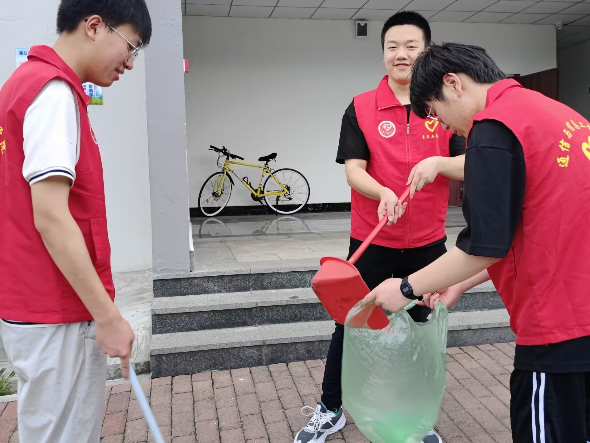5月31日下午7点,通信与信息工程学院2022级电子信息类21班全体成员在仁者楼准时集合。本次活动以书院为单位将同学们分成3组,一组带领同学按照规划路线把道路两边的垃圾清扫干净,一组到达各书院中庭后将中庭摆放的桌椅放置整齐并打扫卫生,最后一组前往教学楼和实验楼,把楼道与教室及课桌中的垃圾清扫干净,垃圾分类后统一处理。安排好任务并分发好工具之后小组开始行动。