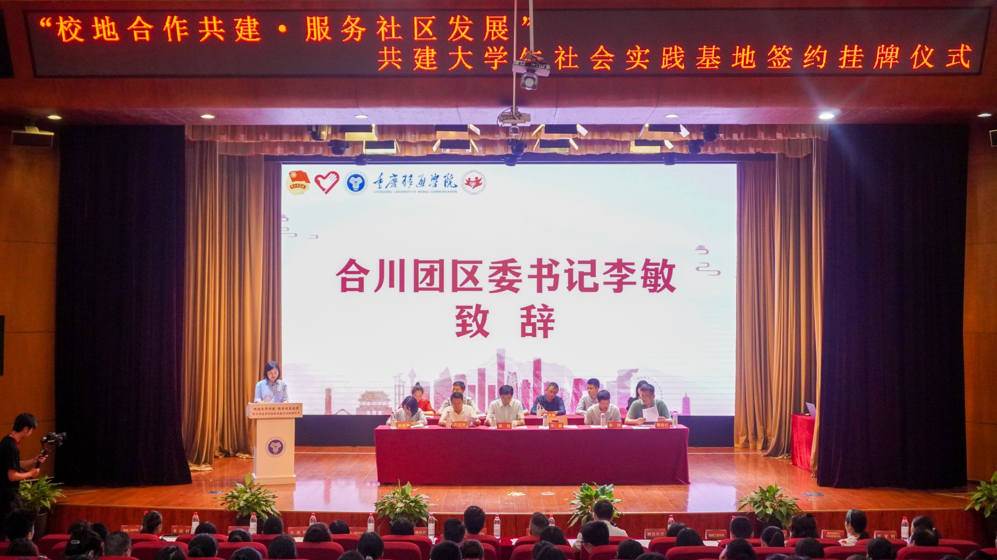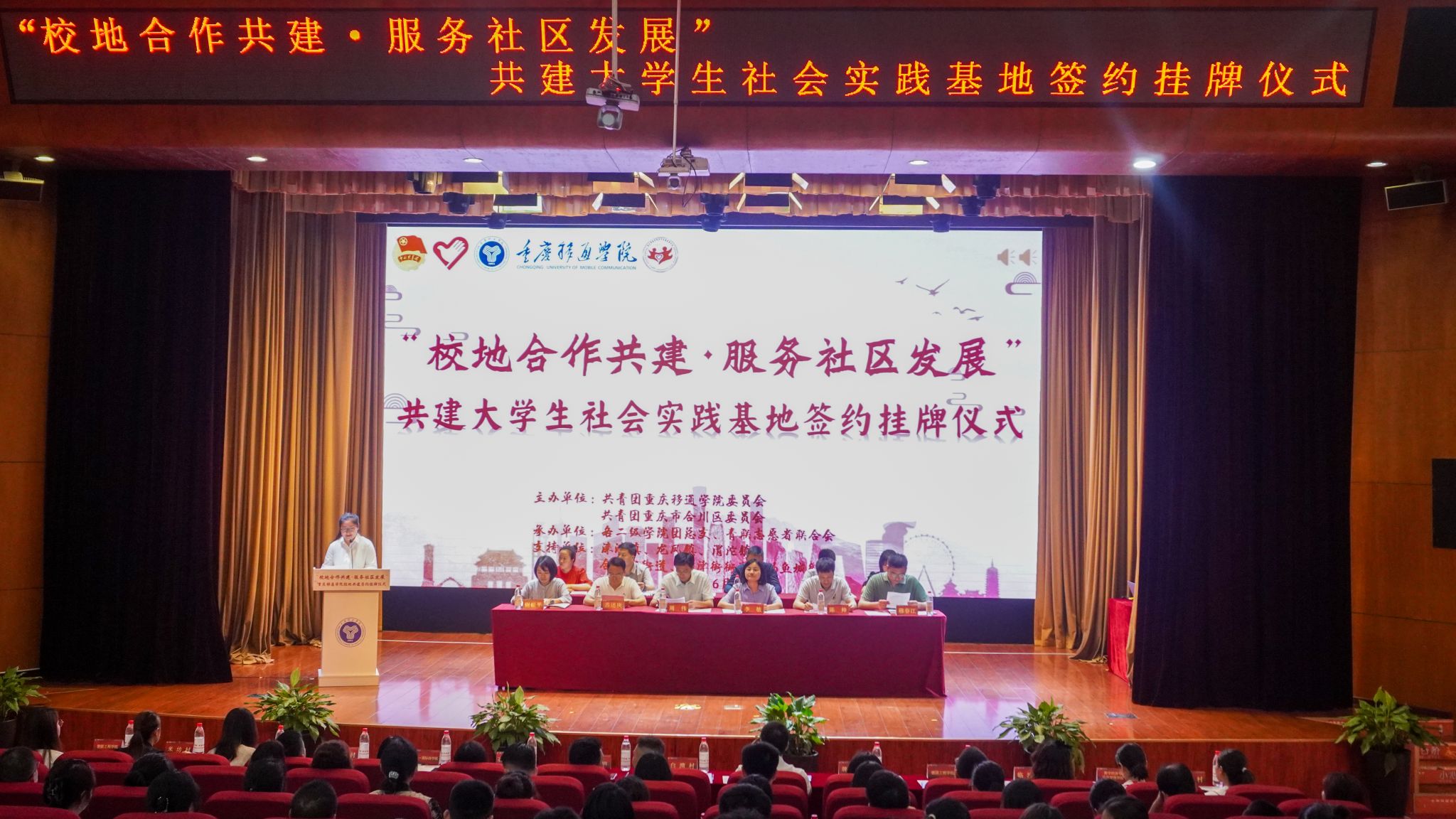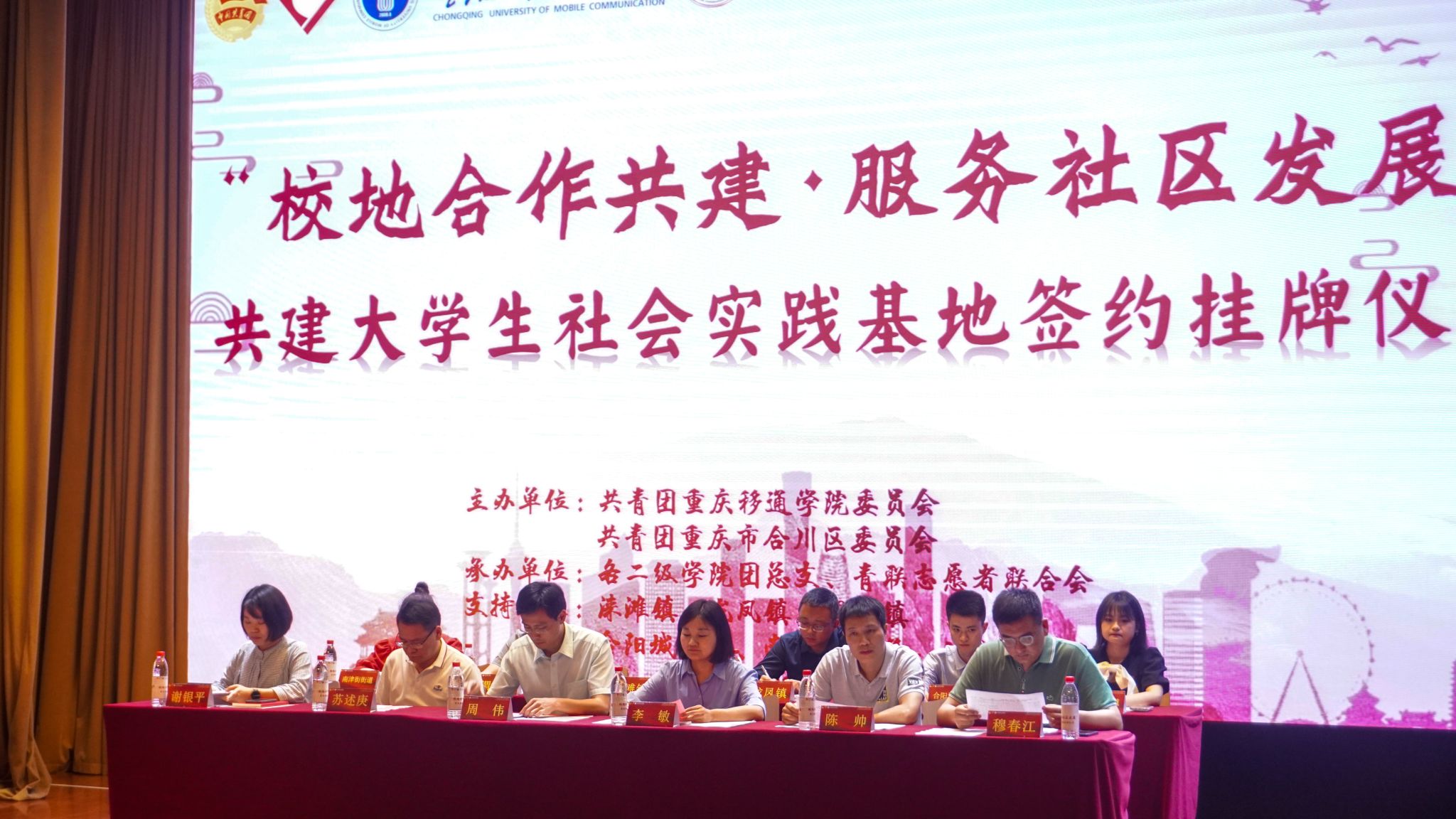 为持续加强校地共建共育,深化校地融合发展,进一步促进我校共青团工作,引导大学生走进社会基层,了解社会实际、服务人民群众、增强时代责任、提高社会化能力。6月2日14:00,由共青团重庆移通学院委员会、共青团重庆市合川区委员会主办,各二级学院团总支、青年志愿者联合会承办的“校地合作共建·服务社区发展”共建大学生社会实践基地签约挂牌仪式在下里巴人剧场启动。校党委副书记、副校长周伟,合川团区委书记李敏,校党委组织宣传部部长苏述庚,涞滩镇党委副书记邓春,龙凤镇党委组织委员衡正洪,渭沱镇副镇长陆建红,南津街街道党工委宣传委员何小勤,学生处处长陈帅,校团委书记谢银平,书院部部长穆春江,以及涞滩镇、龙凤镇、渭沱镇、合阳城街道、南津街街道、钓鱼城街道相关村社区负责人,重庆移通学院各二级学院学工副院长、团总支书记、志愿服务师生骨干代表共计300余人出席此次仪式。