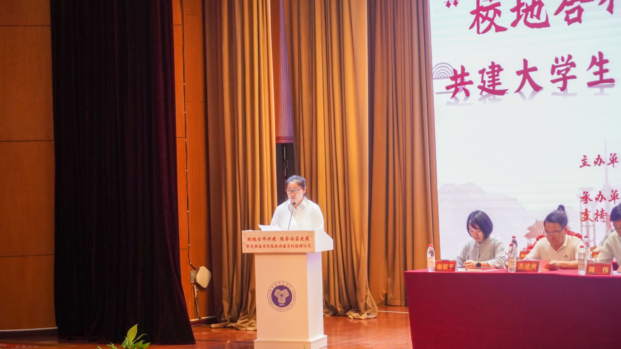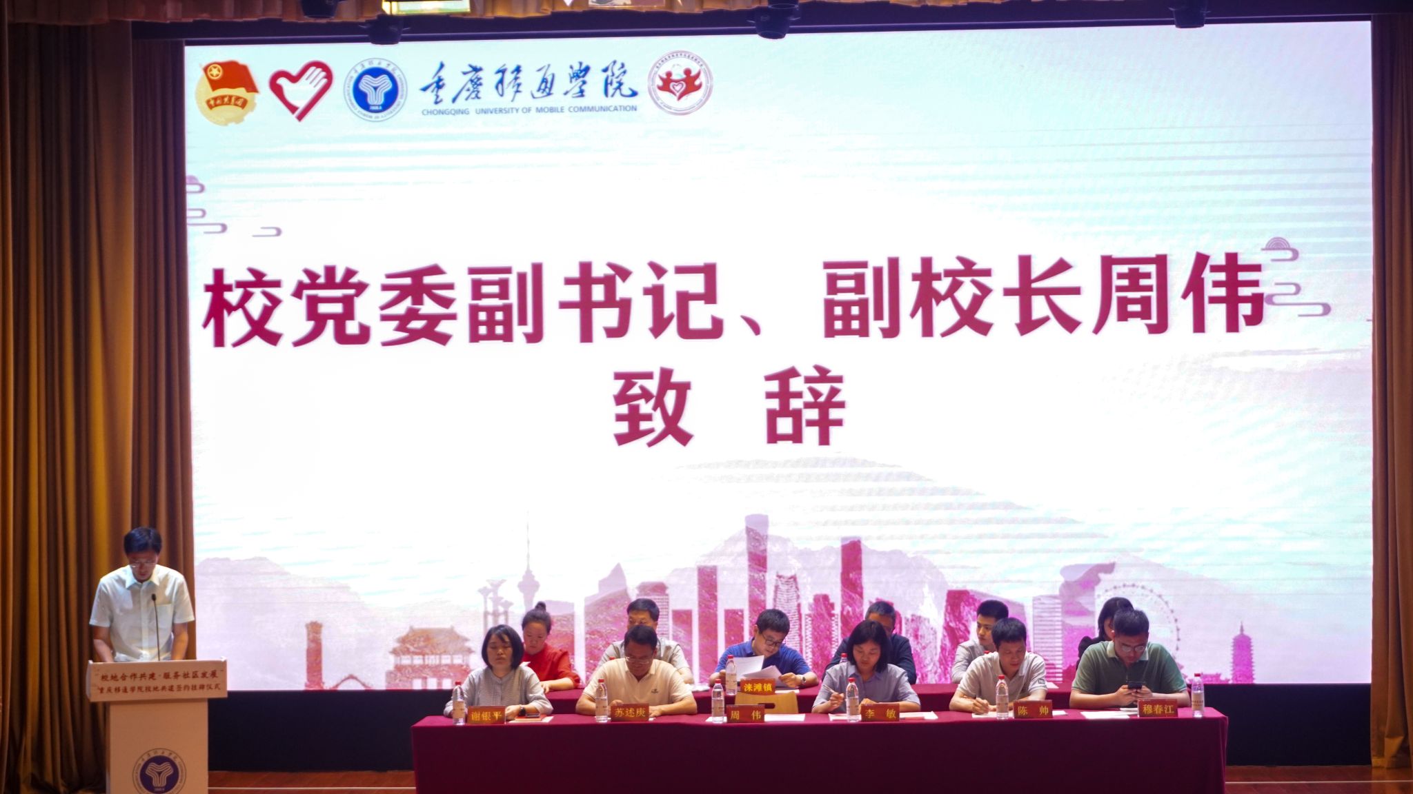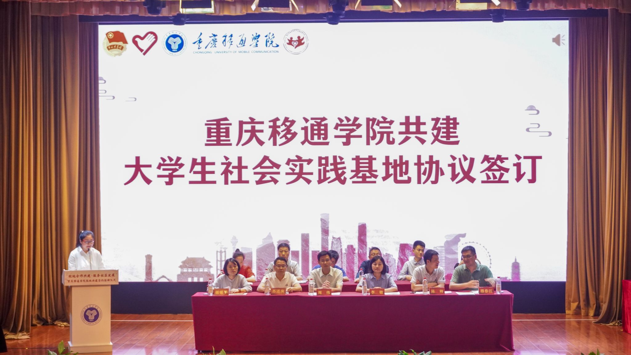 为持续加强校地共建共育,深化校地融合发展,进一步促进我校共青团工作,引导大学生走进社会基层,了解社会实际、服务人民群众、增强时代责任、提高社会化能力。6月2日14:00,由共青团重庆移通学院委员会、共青团重庆市合川区委员会主办,各二级学院团总支、青年志愿者联合会承办的“校地合作共建·服务社区发展”共建大学生社会实践基地签约挂牌仪式在下里巴人剧场启动。校党委副书记、副校长周伟,合川团区委书记李敏,校党委组织宣传部部长苏述庚,涞滩镇党委副书记邓春,龙凤镇党委组织委员衡正洪,渭沱镇副镇长陆建红,南津街街道党工委宣传委员何小勤,学生处处长陈帅,校团委书记谢银平,书院部部长穆春江,以及涞滩镇、龙凤镇、渭沱镇、合阳城街道、南津街街道、钓鱼城街道相关村社区负责人,重庆移通学院各二级学院学工副院长、团总支书记、志愿服务师生骨干代表共计300余人出席此次仪式。