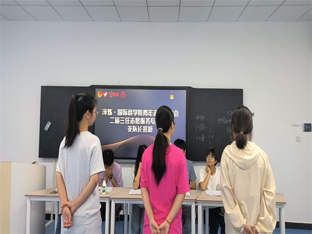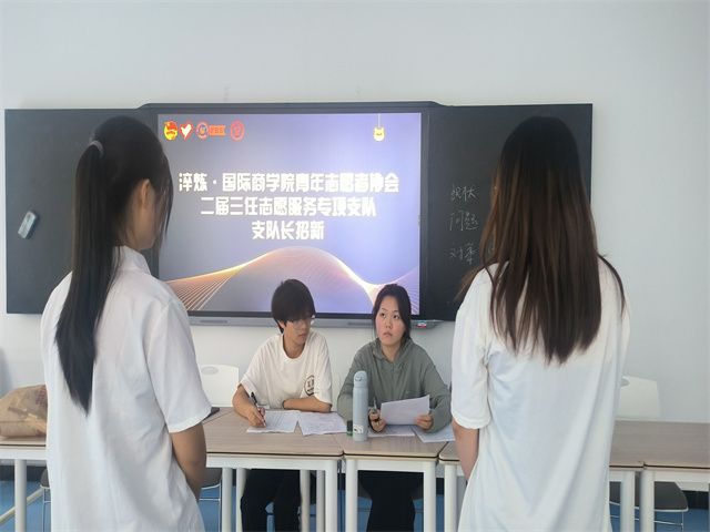 为促进志愿服务更好的发展,做好支队长的换届工作。2023年6月2日,重庆移通学院淬炼·国际商学院青年志愿者协会在5205开展了志愿服务专项支队支队长面试工作。本次面试由淬炼青协指导老师张鑫老师和淬炼青协主席王若凡为面试官,青协各部门负责人参与。