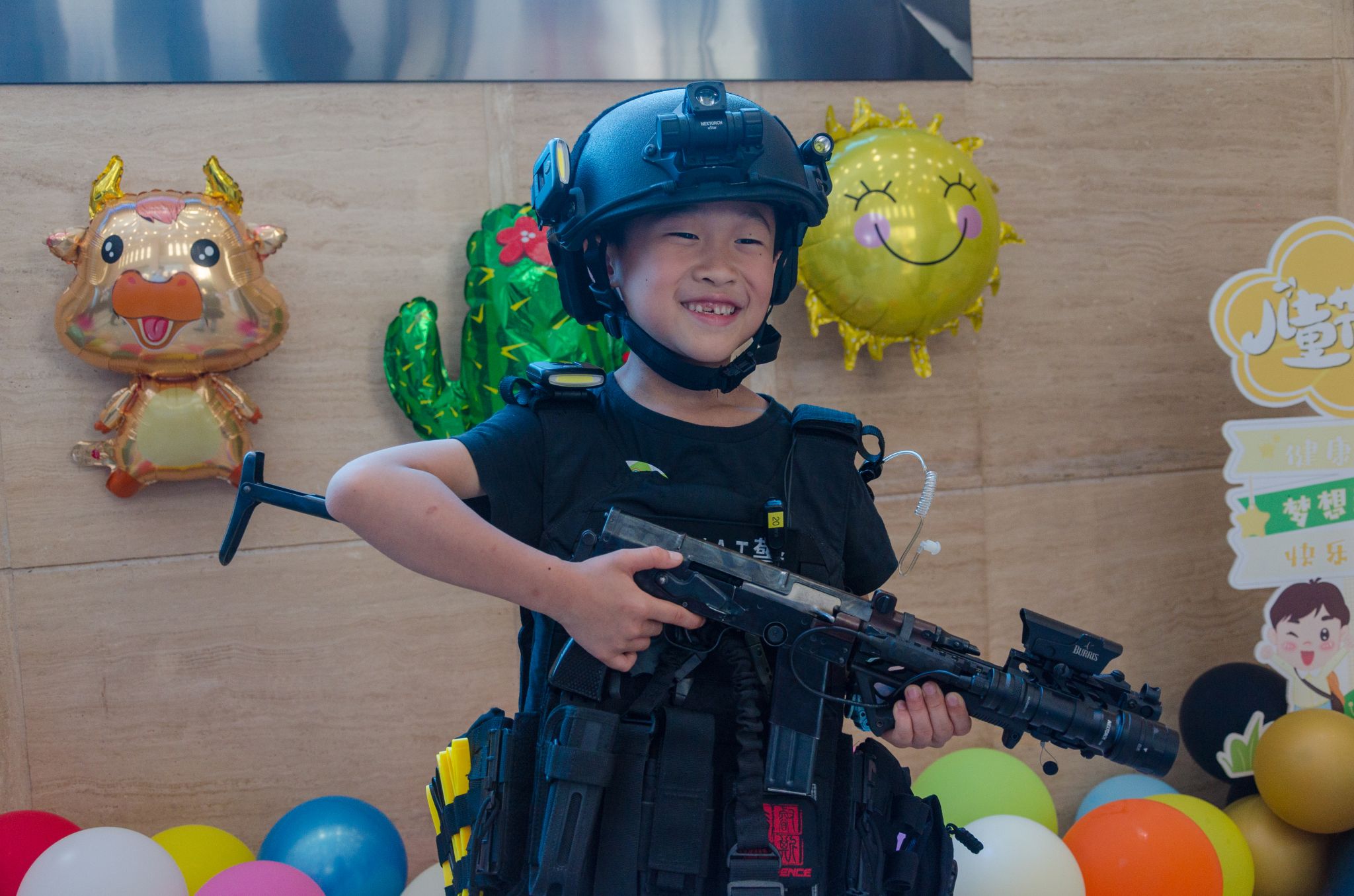 在楼下,孩子们还参观了特警的各类装备,有无人机、警车、枪支、警犬等等区域开放。活动现场热烈无比,很多小朋友都踊跃和警犬合影,现场的志愿者给每一位小朋友和警犬都拍摄了照片,留下了一张张合照。