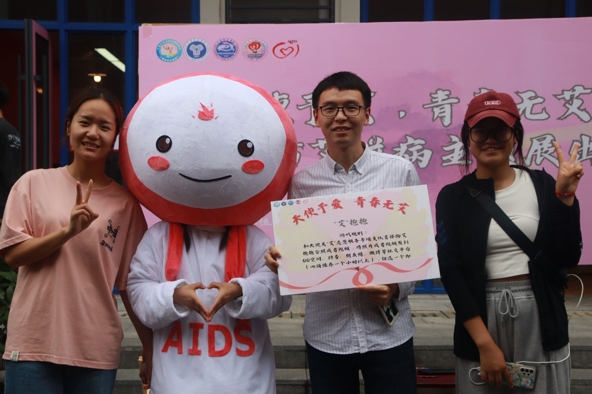 活动现场人潮涌动,各个环节都得到了同学们的欢迎和喜爱。在活动入口处,有志愿者扮演的防艾吉祥物天使吸引了同学们的目光。“如果我是艾滋病人,你愿意和我拥抱吗?”这个问题并没有让同学们畏惧和介怀,纷纷投入到防艾人偶的怀抱中,通过合影留恋,并且在朋友圈进行发布,他们用实际行动去证明自己对艾滋病人的鼓励,以及消除艾滋病人歧视的决心。