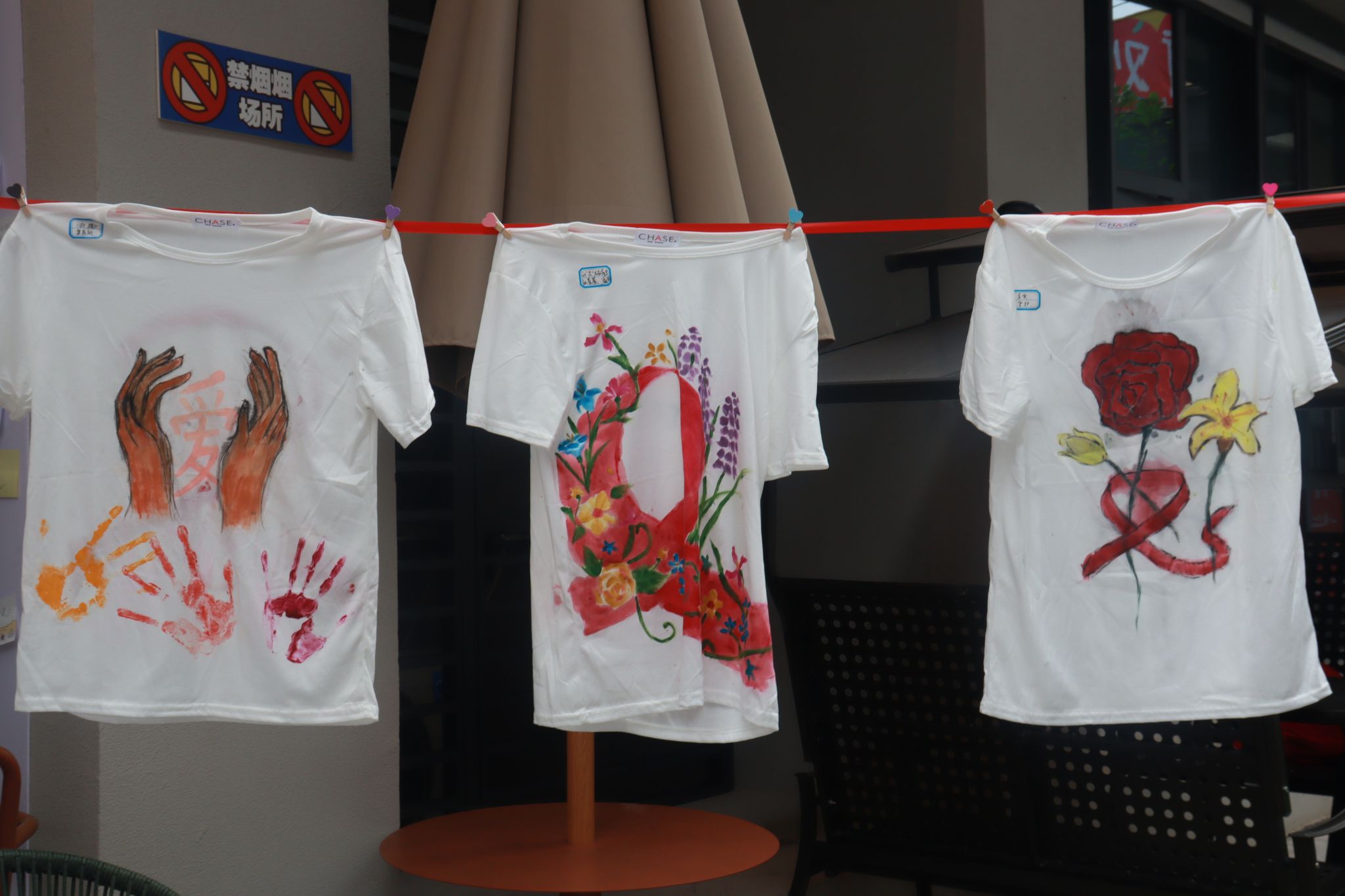 此次主题展出活动,是天使关“艾”志愿服务专项支队获得的2023年中国性病艾滋病防治协会高校基金项目的子内容之一,活动共分为了“寻找红丝带、‘艾’抱抱、‘艾’的便利贴、艾滋病防治有奖问答、‘艾’的魔力套圈圈”五个小游戏,现场布置了了防艾比赛的海报,征集的文化衫和故事集三种防艾元素,在中庭还放有一个签名墙供大家签名纪念。同学们踊跃参与到游戏当中,现场十分热闹,一片欢声笑语。