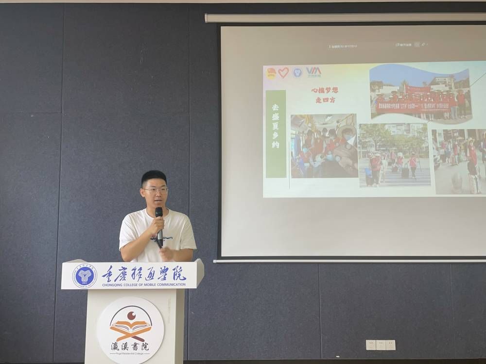 “奋斗是青春最亮丽的底色,行动是青年最有效的磨砺。”贾轩学长向同学们激情喊话,用精彩的讲述与丰富的图片向同学们描绘出一幅幅乡村绿与志愿红相碰撞的美丽画卷。