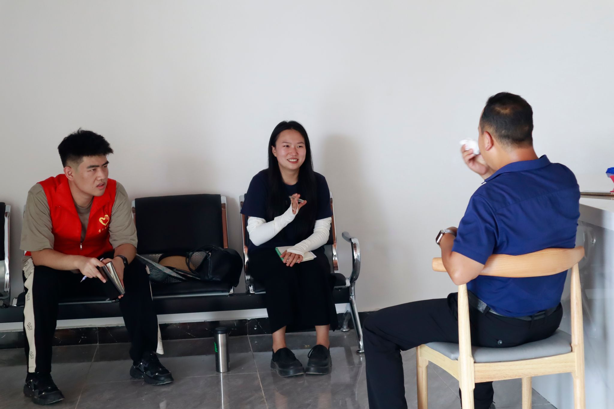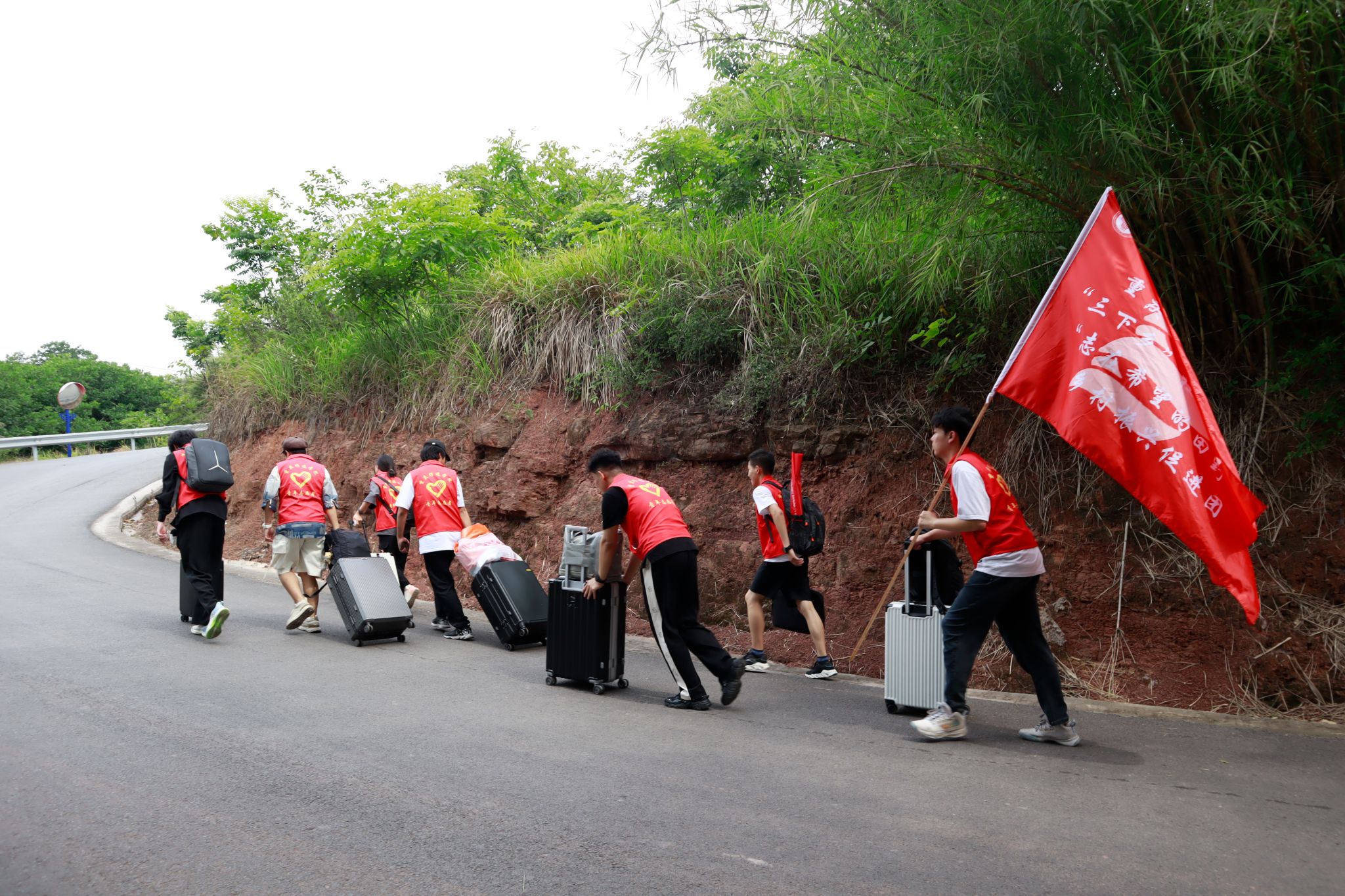 一日之计在于晨,夏日清晨的阳光伴随一群青年炙热的心奔赴三下乡,开启一段激动人心的夏日“乡”约之旅。他们身着红马甲,扬着队旗,载着一腔热忱,为助力乡村振兴注入新活力。迎着朝阳,乘着夏风,志愿者们带着大包小包的行李一路同行,踏上了前往寨门村的路。蜿蜒盘曲的山路透露着神秘,阳光穿过叶层,树影婆娑,混着泥土味,沉重的行李箱装满一颗坚毅赤诚的奉献之心。汗水浸湿头发,划过脸颊,绽放出青春的光彩。炎热的天气,负重徒步五公里的蜿蜒山路,一路上走走停停,诸多不易,皆在团队之间相互帮助与鼓励之中化作动力。志愿者们用双脚丈量着寨门村每一寸土地,以奋斗之姿实践志愿之行。抵达目的地,稍作休整,整装待发,再次踏上征程,前往寨门村村委会展开乡村调研。