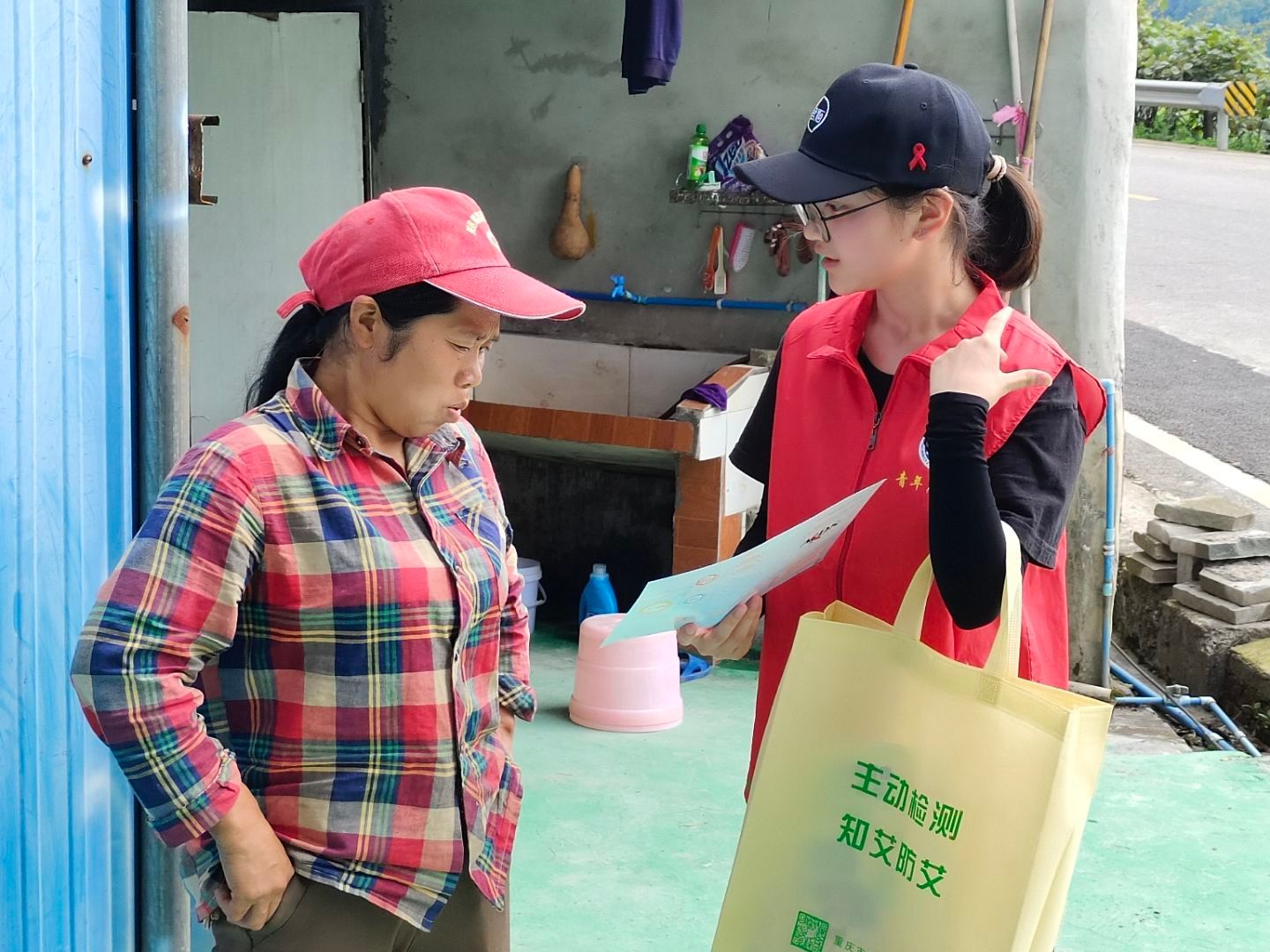 同时,志愿者们用方言和普通话结合,挨家挨户讲解当前我国和社会的禁毒防艾形势,传播毒品、艾滋病的预防措施和方法,以及艾滋病检测意义,禁毒的重要性。面对听觉不灵的老人,志愿者提高了声量,用“喊”的方法来进行宣传;面对小朋友则是俯下身进行宣讲。当有村民朋友提出了对毒品、艾滋病的疑问时,大家又用所掌握的知识进行答疑解惑,提升宣传效果。