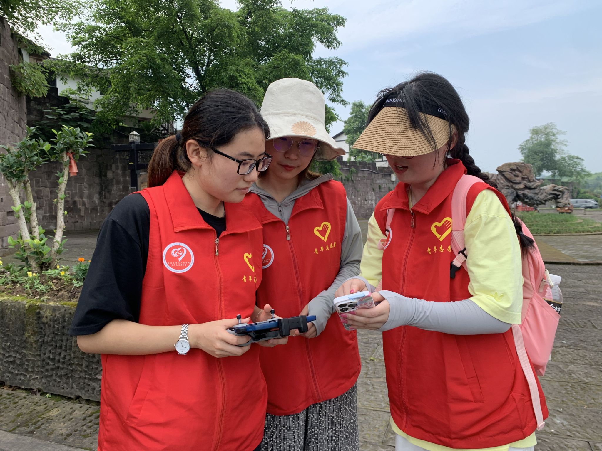 古城门内,错落有致的小青瓦建筑群,气势磅礴的二佛寺,极大程度保留了明清时期的原始而典雅的原始风貌。志愿者们用相机打开沉寂千年的古镇风光,无人机在清晨的薄雾中缓缓上升,从鹫峰山顶宏伟壮观的二佛寺到山下商铺水汽氤氲的滑嫩豆花,将古镇的经典景观与人间烟火一并捕捉并记录,送给大家未曾谋面的朋友。高低错落的青瓦房与在大街小巷穿梭的志愿者,动静交错,古镇的灵魂也在人与自然的和谐之中已经悄然出现。古镇唤醒者们选择以现代科技为载体,实现民族文化传统的传播与传承,在这一刻,科技不再是冰冷的器械,而是实现传统与现代之间对话的“时光机”,实现让我们与鹫峰山、二佛寺共赏宋时月,共品唐时茶。