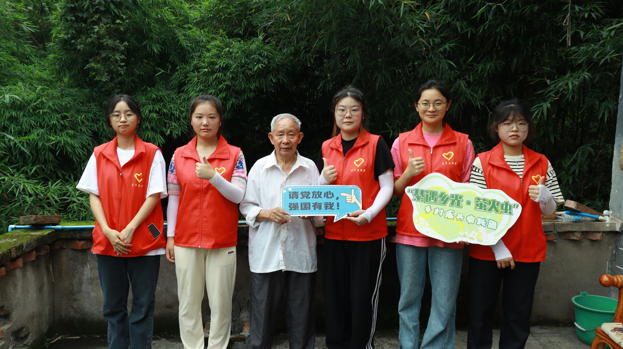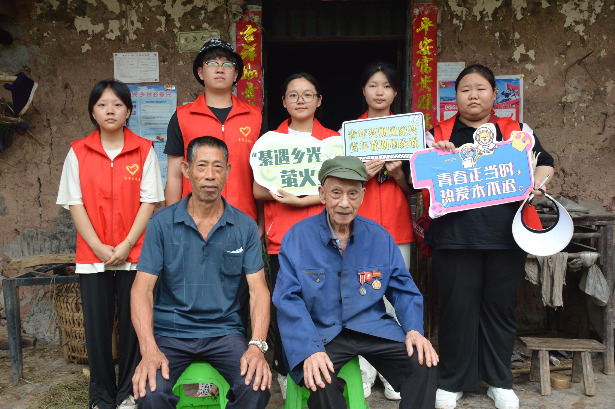 (图为志愿者与老党员合照)