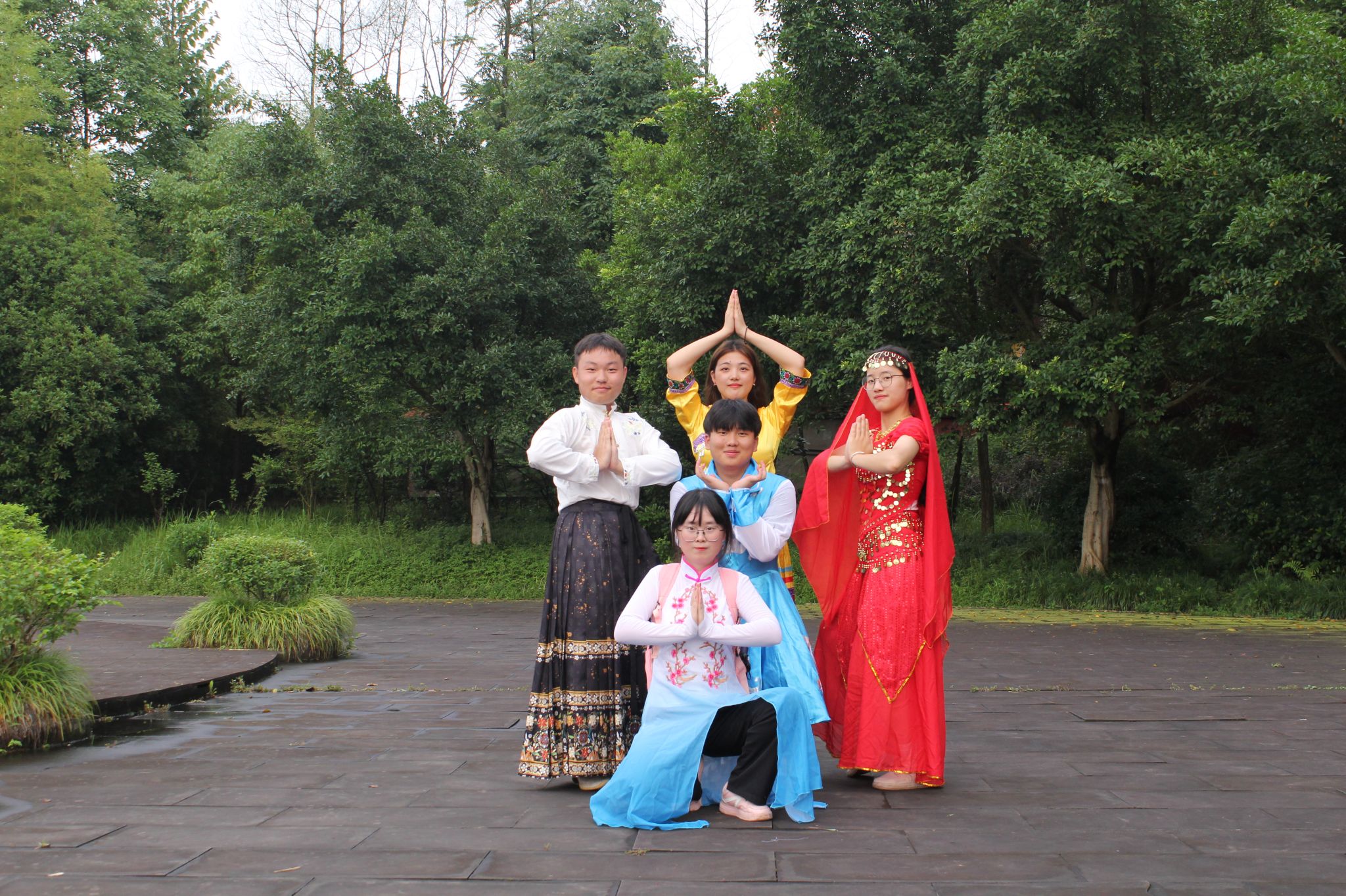 “依山傍水的涞滩古镇,循山而建的宋代大佛,喜欢这份安静古朴”。7名志愿者铿锵有力的朗诵声在耳边回荡,下午5点,志愿者们穿着民族服装,有序的围绕在涞滩古镇莲花池旁尽情舞动着青春,这预示着各个民族文化友好,紧接着舞蹈《民族大融合》在涞滩古镇二佛寺中心随着舞曲激情飞扬,汉族、傣族舞、蒙古族舞蹈等交相辉映,呈现出一道靓丽的风景线,今天是以文化内涵为主线,通过民族舞蹈形式演绎涞滩古镇独具魅力的民风民俗文化,让人们对传承和创新当地传统文化有一个新的认知,最后,志愿者在古镇的莲花池与艺术文化熏陶中结束。蜕变古镇,蓄势而起,暑期三下乡活动第5天完美结束,让我们一起来期待明日的视觉盛宴!