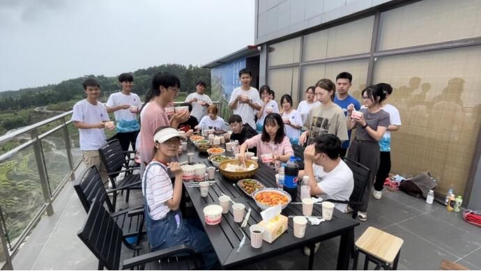 生活就是柴米油盐酱醋茶。但随着时代的发展,乡村生活好像离我们越来越远。为了跟随乡村振兴的浪潮,同时为乡村振兴付出自己的力量,“綦聚微芒”乡村振兴促进团于2023年7月2日前往与三角镇合作共建的大学生社会实践教育基地——雾垚茶园帮助茶农采摘,与茶农进行交流沟通,调研茶产业发展情况,同时为了感受茶农的生活,大家一起协作用自己的双手制作了一顿舌尖上的美味。