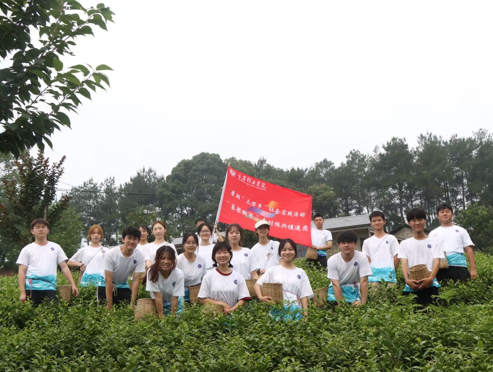 风吹十万里,满目青翠的茶山,早已随着春的脚步悄然萌芽,到了夏天满山茶树都换上了新装,只此青绿,踏上踏青采茶之旅,追寻一场夏日山野里的微风和茶韵。“綦聚微芒”乡村振兴促进团一到目的地,映入眼帘的是无边的茶园,满山遍野的碧绿,踏上茶山的第一步便真实地融入到了茶山中。呼吸着山间清新的空气,同学们迫不及待地想把双手伸向茶树,在专业人员的带领下我们学习了采茶的要领,同学们埋头采茶, 身子被隐蔽在茂密的茶叶当中,仿佛大师的油画绘本一般。