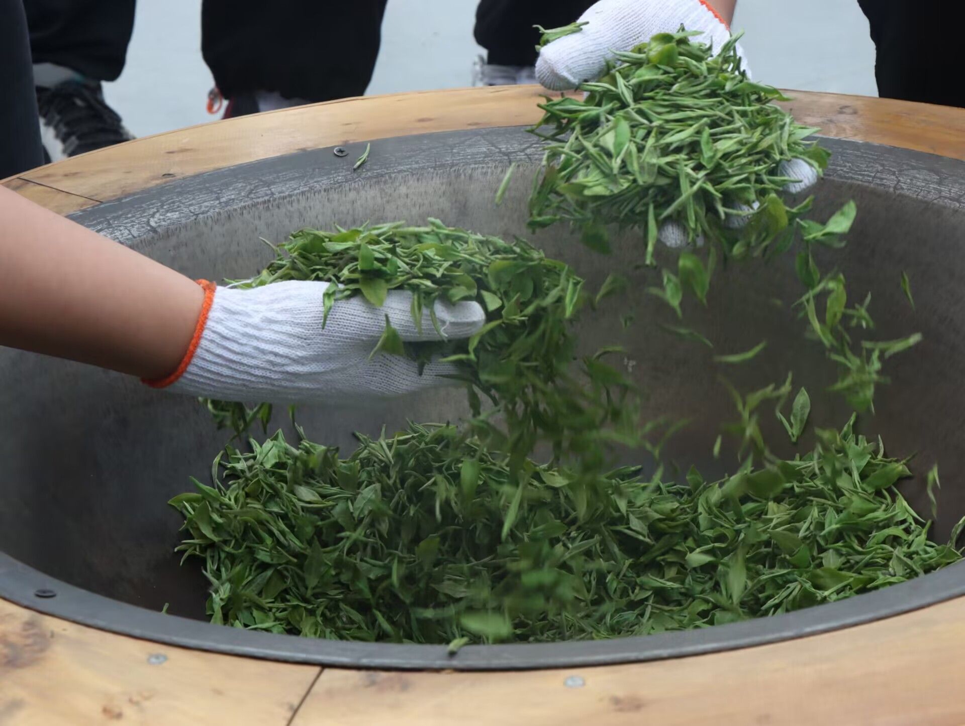 负责人王宇女士向我们介绍说:“采下来的新鲜茶叶,要变成我们在市面上见到的形态是非常繁琐复杂的。”在她的带领下,我们在现场才真切感受到制茶的辛苦,它的每一步都需要耐心和细心,我们看着小小的茶叶在王宇老师手里被团成一团,在手掌间逐渐变化,觉得奇妙又新奇。