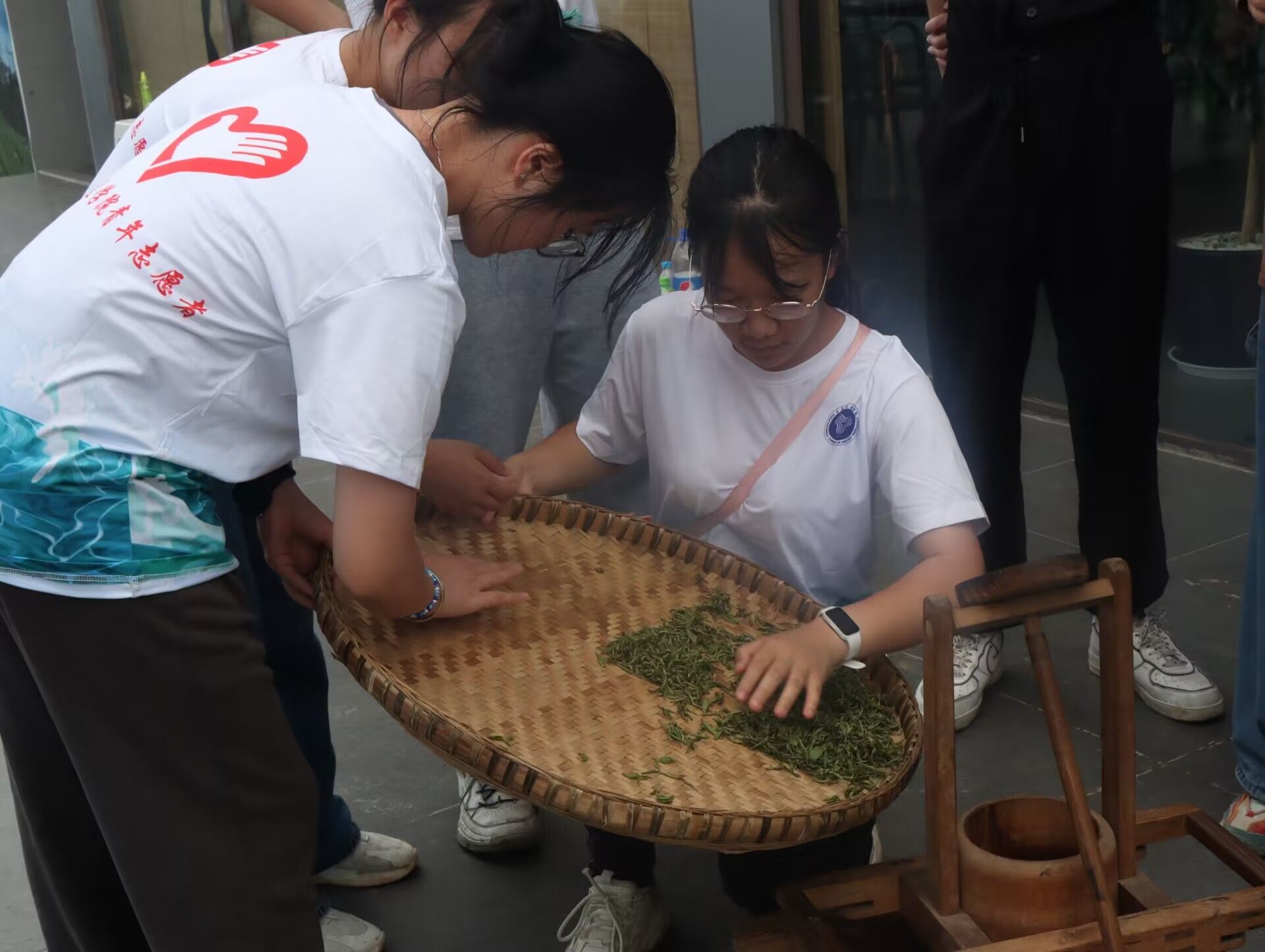 终于轮到我们亲身实践啦,在王宇老师的帮助下,我们亲身实践了茶叶的制作——杀青、抖散、揉捻、烘干、搓条等工序,完成了纯手工无污染的茶叶加工。闻着茶香,让人沉醉。