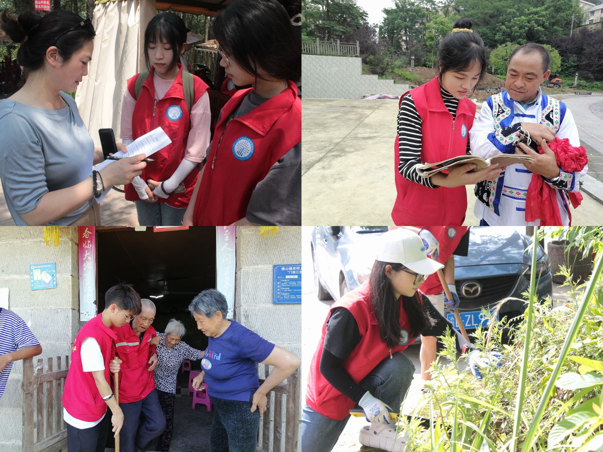 活动中,在郭利老师和王健老师的带领下,团队以小组为单位开展了创建卫生文明活动,人居环境、防诈骗、交通安全宣传问卷调查活动,乡村特色贡米产业调研活动,寻访昆词艺人活动,慰问空巢老人等活动,并结合横山镇新寨村的实际情况,帮助进行了墙画的实施和同学们创作的簸箕画的爱心义卖。以及帮助村民整理庭院、打扫卫生,抓好宣传发动、教育促动、示范带动,引导村民从思想上、行动上提高人居环境质量,让乡村更美更宜居,实现环境整治与当地特色相结合,得到了新寨村党委和村民的大力支持和欢迎。