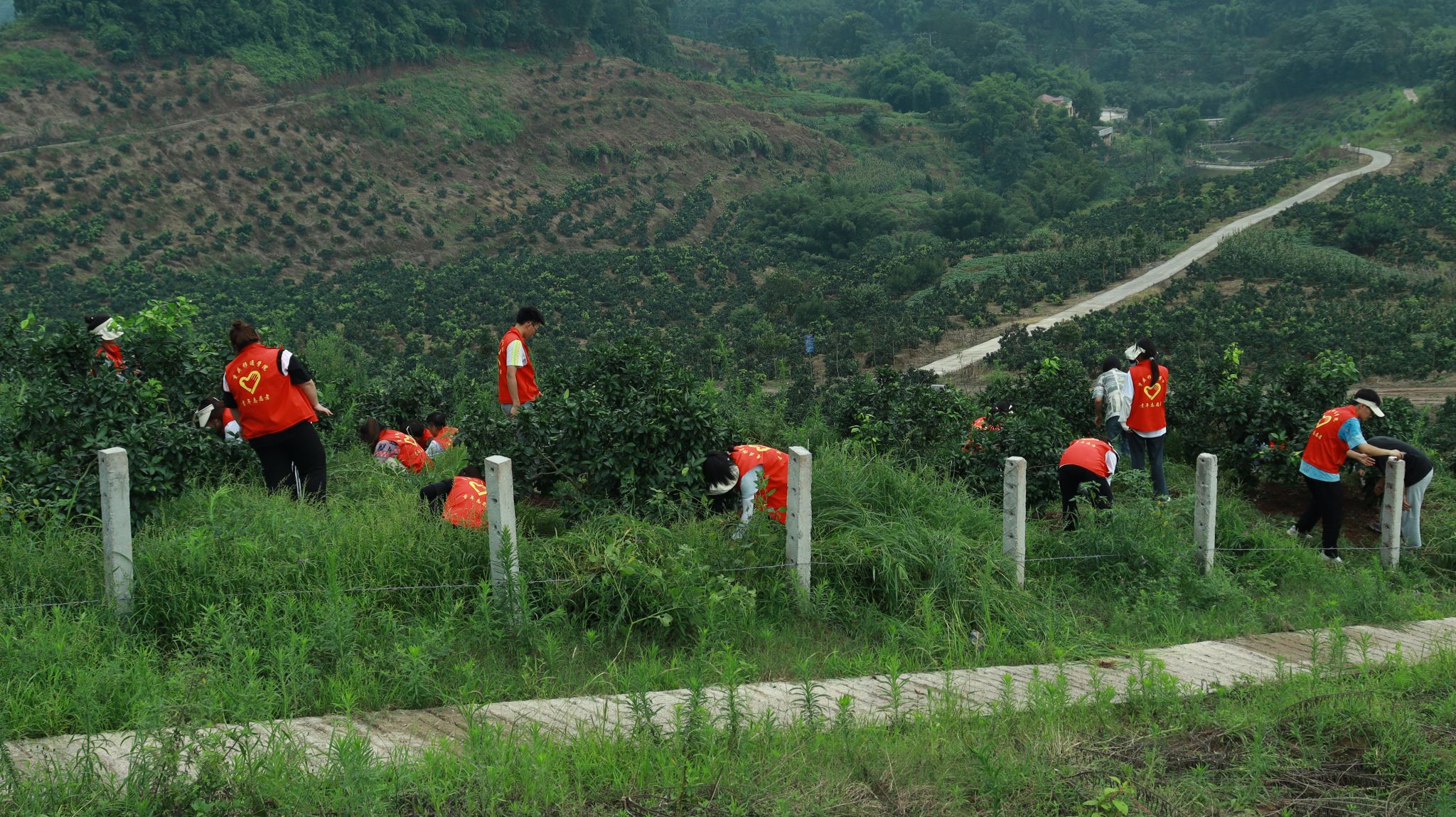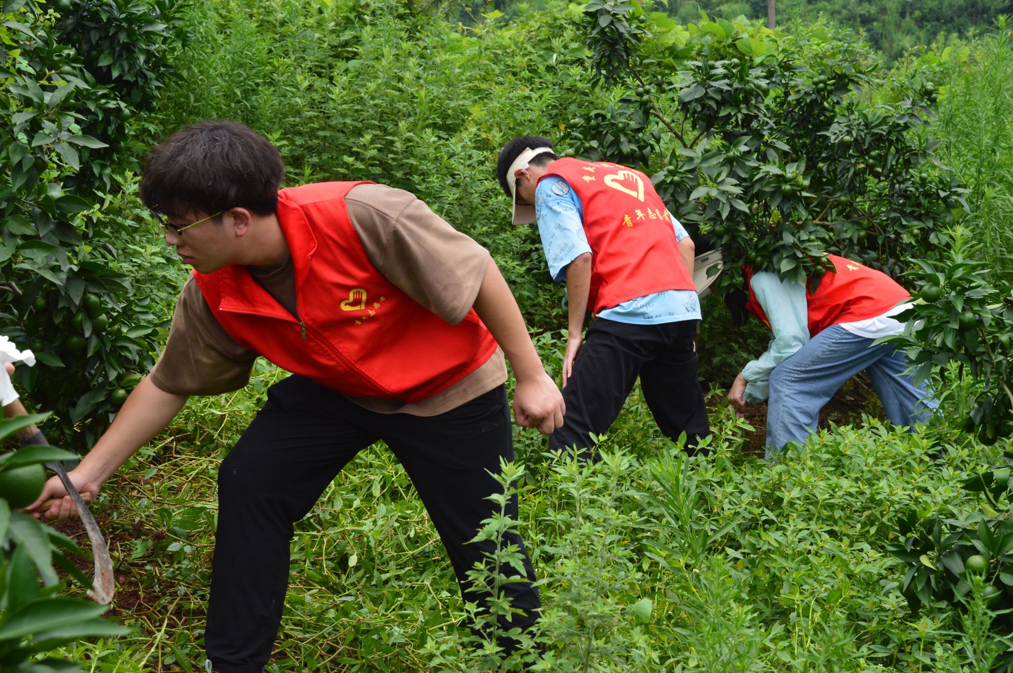 扎根乡村深处,逐梦乡村振兴。田地里杂草盘根错节,参差不齐,遍地的蚂蚁窝、扎人的猫抓刺,志愿者没有因为这些令人痛楚的“荆刺”而放弃。脚上的泥泞,咸辣的汗水流入眼帘,挥动着镰刀停顿后手不住地微颤,没有人抱怨,勤勤恳恳地劳动,清除抢夺果树养分的“真凶”。纸上谈兵终究是不可行的,只有身体力行,看似简单地除草工作,也是一门“手艺活”,不放过每一个根枝、细节、做好每一项工作、不断地发现和解决问题,才能摘取到乡村振兴成功的“果实”。