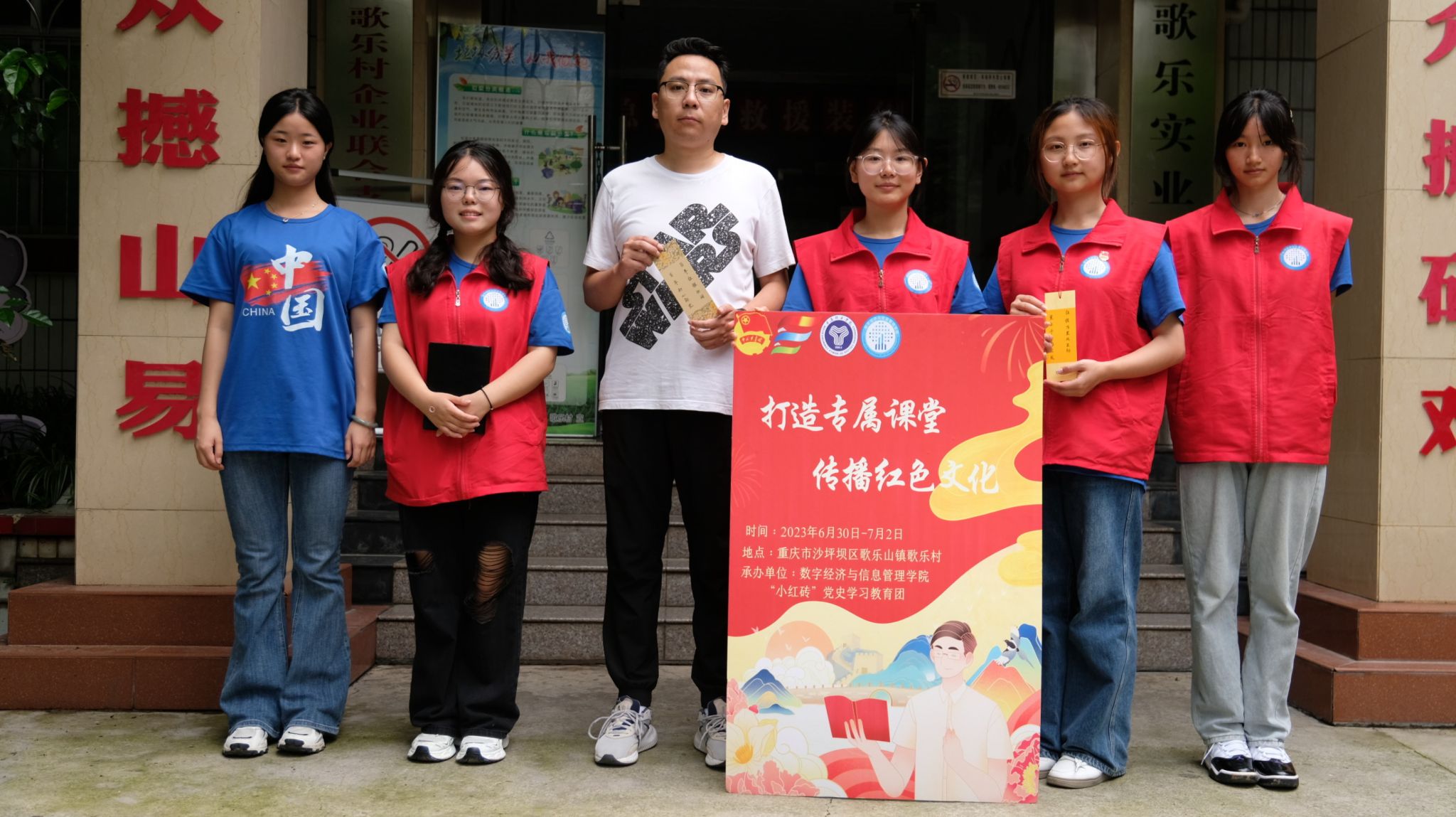 为培养爱国情怀,全面落实素质教育的根本要求,进一步落实学习革命文化和红色精神,坚定理想信念,积极弘扬传播红色文化,让小朋友初步感受红色基因,萌发爱国热情,学习革命前辈的优秀品质,树立认真学习、长大建设祖国的理想。为此,重庆移通学院数字经济与信息管理学院“小红砖”党史学习教育团与沙坪坝区歌乐村村委会于2023年7月3日在沙坪坝区歌乐山村开展“打造专属课堂,传播红色文化”的红色文化课堂教学班,“小红砖”党史学习教育团的志愿者们带领当地的小朋友们唱红歌、讲演红色故事、画红色历史等。通过红色文化课堂,引导小朋友们树立坚定地理想信念,为今后的学习与生活中贡献价值。