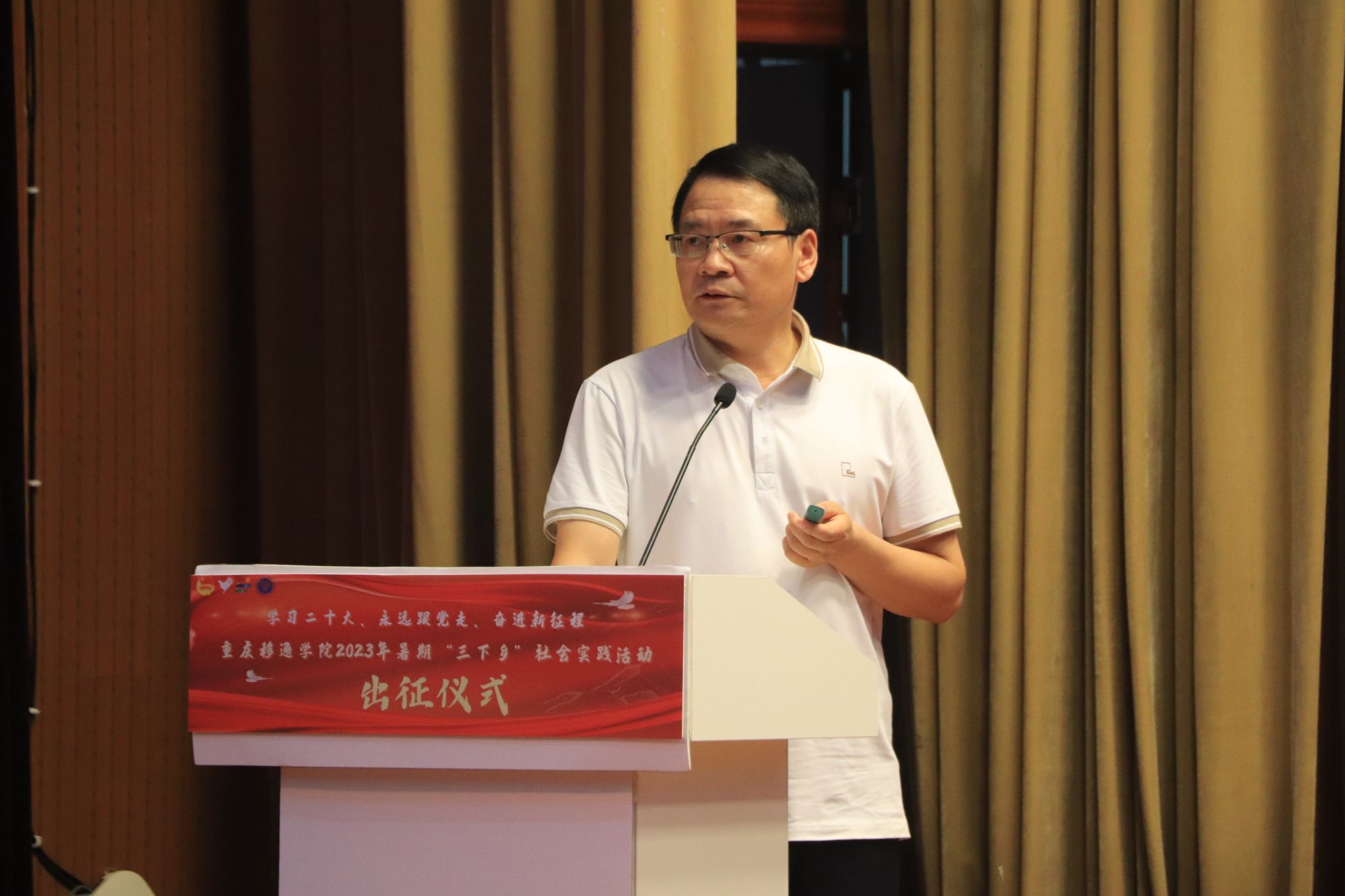 出征仪式上,校党委组织宣传部部长苏述庚老师做经验分享,指导本次“三下乡”活动的宣传工作,他指出:“新闻稿要突出自己的主线,根据实践内容,把握文章的方向,拒绝标题太空泛、太空洞、太抒情,将具体数据与标题联系起来,注意细节问题,尽量引用原文,谋篇布局,仔细检查,三审三矫……”苏述庚老师将自己的实践经验与时代脉搏相结合,鼓励“三下乡”志愿者注重实践,用心用情做好宣传,切实切地推动发展,在时代的潮流里勇毅前行,乐于创新,把握契机,提高质量。