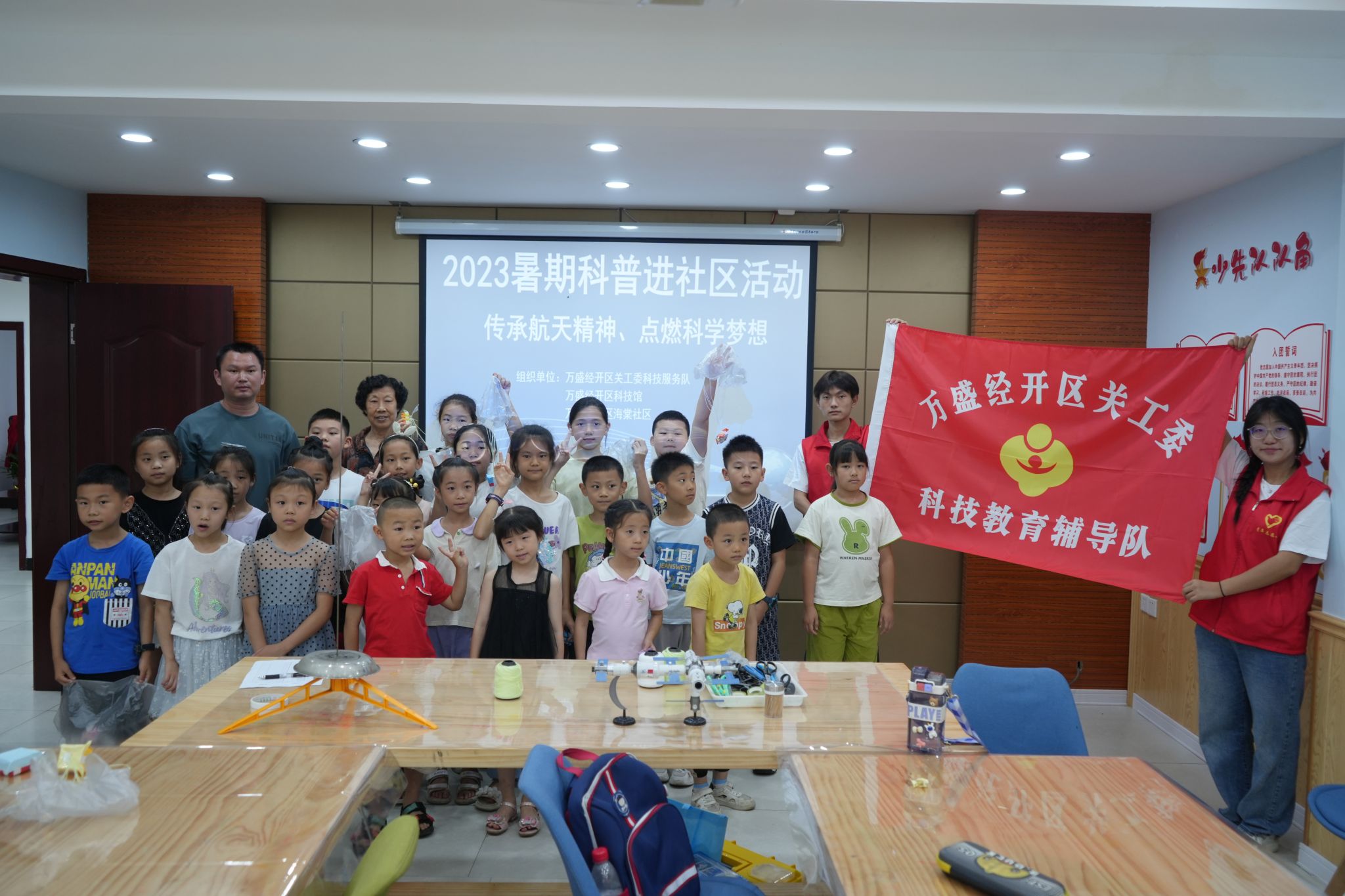 习近平总书记强调,脱贫攻坚取得胜利后,要全面推进乡村振兴,这是“三农”工作重心的历史性转移。乡村教育事业是乡村振兴战略的重要支点,对接和服务好乡村振兴战略,以高质量教育赋能乡村振兴,是教育部门和教育工作者义不容辞的责任与担当。乡阳小队积极响应万盛经开区海棠社区需求,于早上8:00到达社区,协助社区开展“传承航天精神,点燃科学梦想”2023暑期科普进社区活动。以科学发展观为指导,弘扬科学精神,激发学生的创新精神和科学兴趣,培养学生的实践能力。面对充满未知的世界,孩子们通过科技教育探索“十万个为什么”,获取进入科学世界的敲门砖和金钥匙。乡阳小队的小老师们积极向小朋友们普及基础科学知识,引导小朋友们制作降落伞,提高小朋友们的动手能力。此次科技课,通过实践让科技教育走出书本,解放孩子们的创造力,增强学生从小爱科学、学科学、用科学的意识,也让科技教育的种子在青少年内心生根发芽。