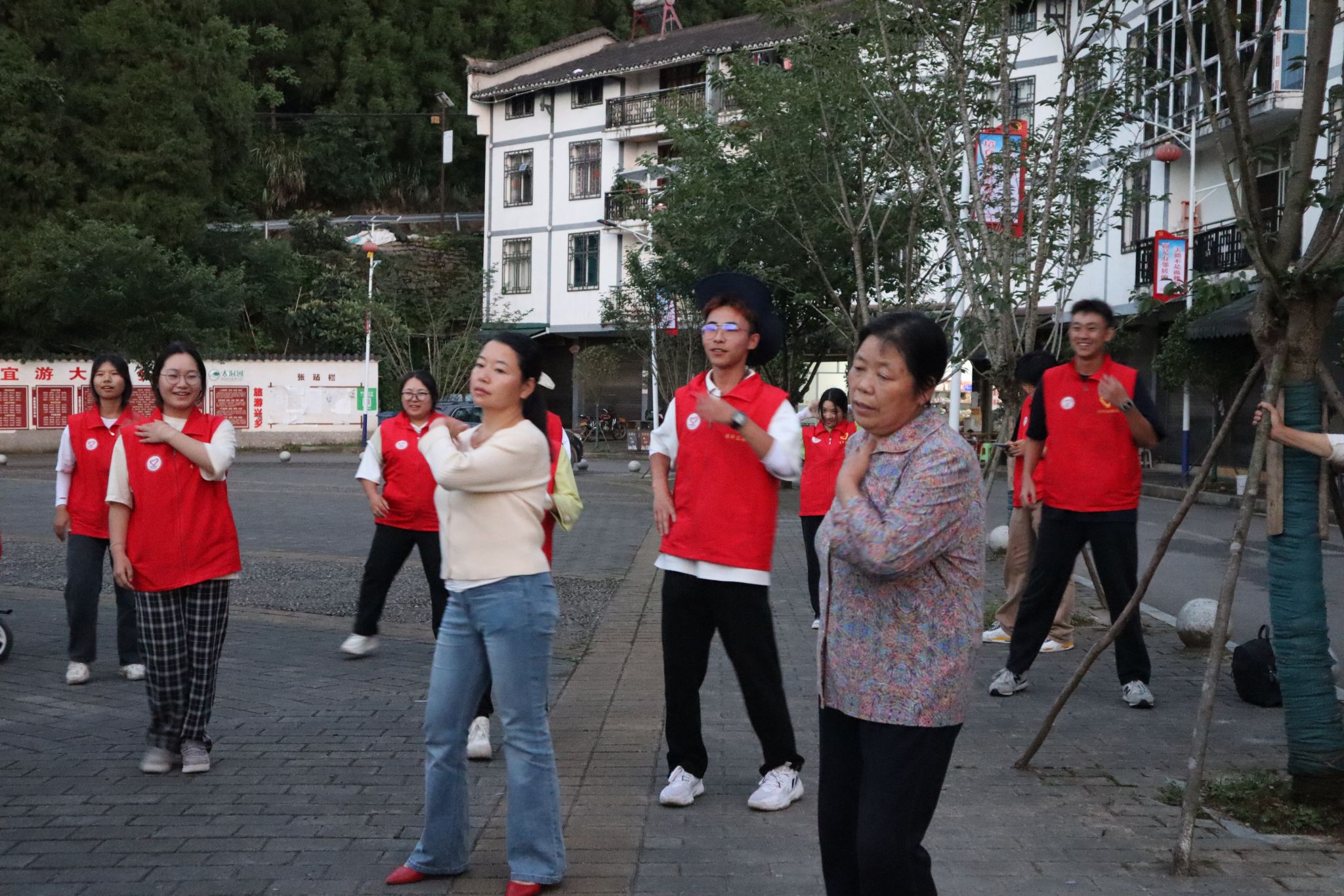 夕阳西下,淬炼“幸福儿”们齐聚在幸福广场,和广场的叔叔阿姨们一起共跳广场舞,共享趣时光。在阿姨的带领下,“幸福儿”们从笨拙生涩的舞步到熟练轻巧,成功地和叔叔阿姨跳成一片,场面十分欢乐和谐。广场上,动听的歌声,优美的舞蹈,足以减轻幸福村中叔叔阿姨一天的劳累。叔叔阿姨舞动身姿,跳转步伐,调节气氛,苦累都释然,难忘于今朝。随后,为了缓解“幸福家”实践团成员们彼此之间的不熟悉,打破这种“尴尬”的状态,实践团组织开展了破冰活动,通过破冰活动,让“幸福家”的每位成员彼此熟悉,彼此了解。同时,通过此次的破冰活动也为后续“幸福家”美丽中国实践团的“三下乡”工作开展得更加的顺利奠定了基础。在破冰小游戏中,每位队员都增进了对彼此的了解,彼此的关系也更加亲密。值此,淬炼“幸福儿”们难忘于幸福村庄。