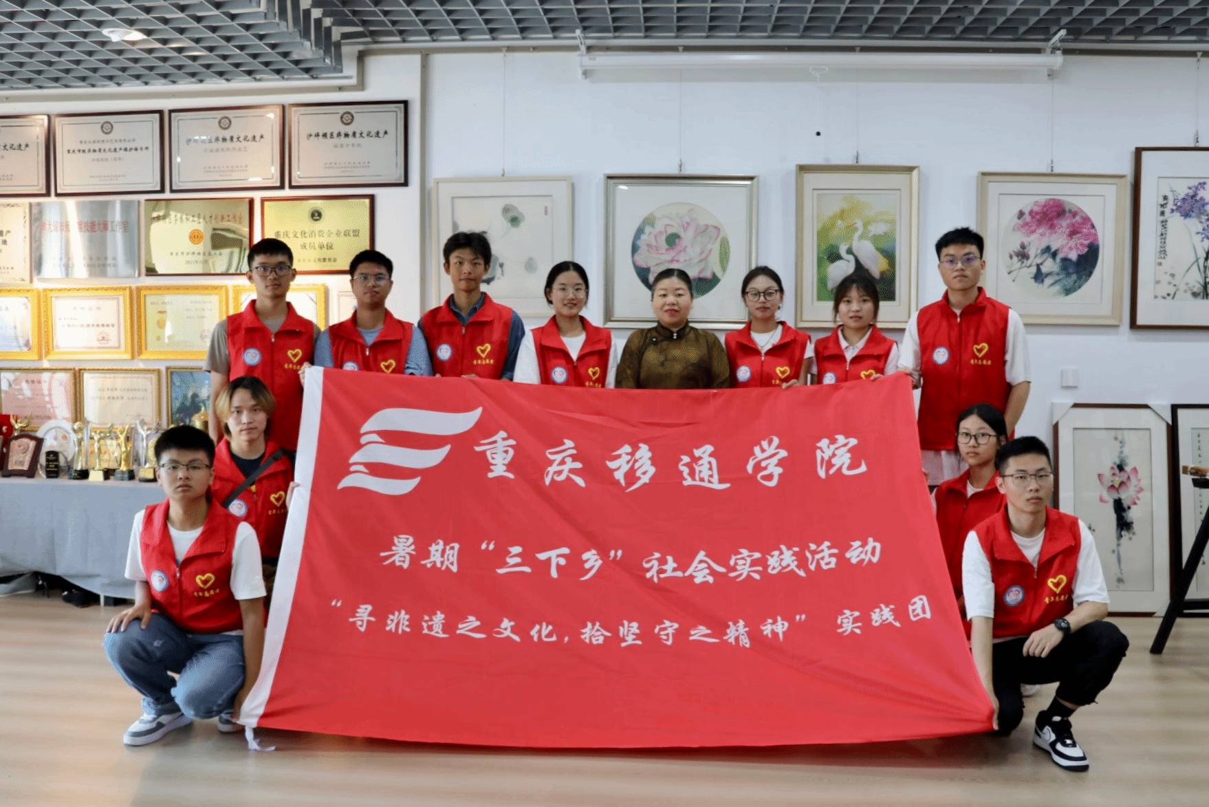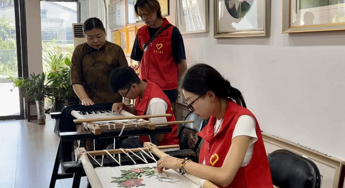 沐浴清晨的曙光,轻抚林梢的微风,伴随着对非物质文化遗产的弘扬与保护,“寻非遗之文化,拾坚守之精神”实践团于7月5日出发前往本次征程第二站:单大琼首席技能大师工作室回访非遗传承人单大琼老师。