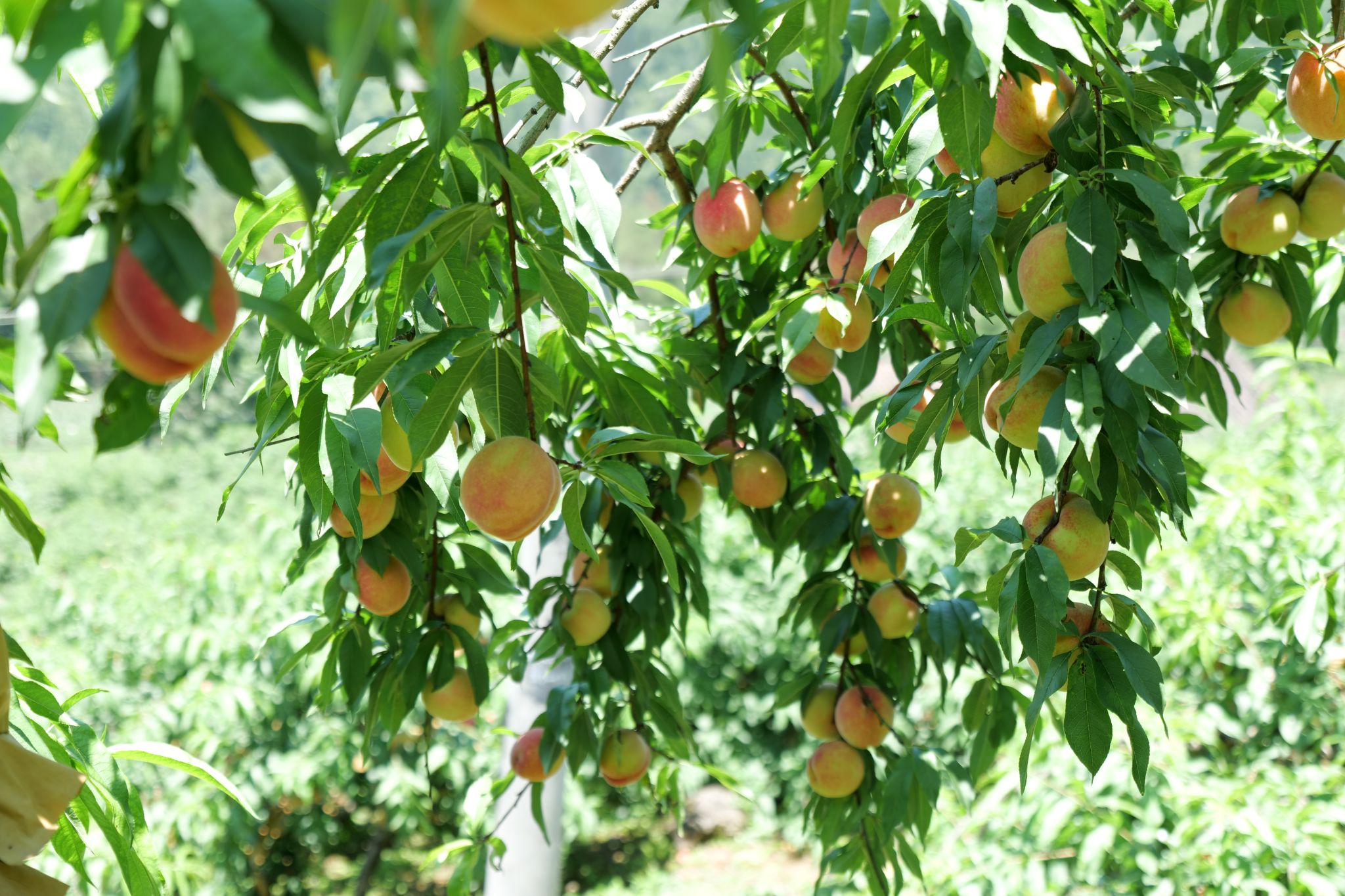 “都是桃林,这一整片山!”桃树种植园的园长毛叔叔为我们详细介绍了桃林的前世今生。在毛叔叔的口中幸福儿得知,在百亩桃林之前,这里曾是无花果果园。无花果喜温暖,耐高温,但是严重的涝渍或空气湿度过大可能导致裂果和烂果,武隆幸福村湿度太大不适应无花果的生长,所以无花果种植成效不佳。经过村干部和种植专家的勘测,武隆幸福村湿度大、光照足,能够给桃树提供充足的养分,最终决定开展桃树种植,以此带动了幸福村的经济发展。