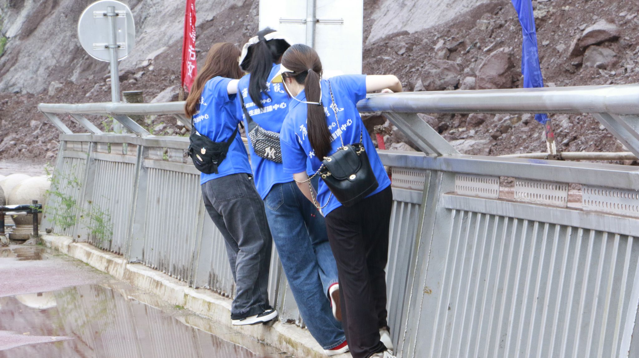 调节坝位于汉丰湖出水口,作为如今仍在使用的大型水利工具,发展风雨廊桥景点,重视开州段长江流域生态环境的同时具有使用意义及赏玩价值。团队徒步考察沿途文旅服务业过程中路遇大雨,全体成员志愿在汉丰湖沿岸游客服务中心进行志愿活动,帮助游客服务企业整理客流量到访资料等相关工作,了解调节坝周边文旅景点游客黏合度和配套服务体系,包括停车场、住宿、餐饮服务建设,考察调节坝目前环境修建及更新情况。