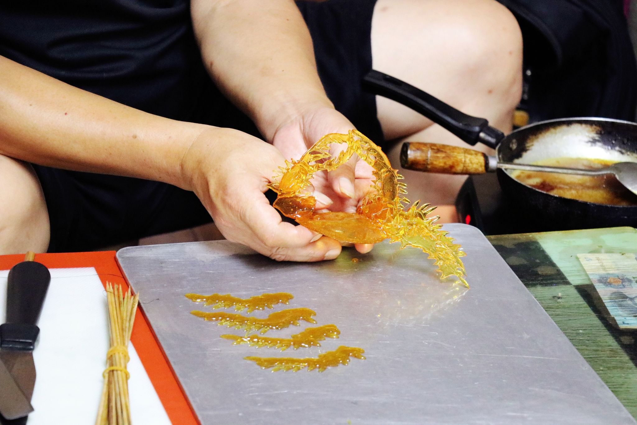 糖画所用工具并不复杂,一口平底锅,一把勺子、一块大理石板、一个小火炉,搭配刘贵兵先生娴熟的技艺,即可诞生一幅独具匠心的糖画作品。