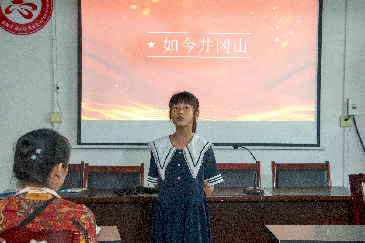 为了让井冈山精神和小朋友们的日常生活相结合,在宣讲团志愿者的鼓励和带领下小朋友们纷纷鼓起勇气,展现学习成果。有的小朋友唱响《井冈山歌谣》;《井冈山颂》和《井冈山之歌》两支舞蹈翩翩而起;有的背诵红色诗词,如《七律·长征》《清平乐·六盘山》:歌颂了中国工农红军在长征中艰苦跋涉的壮丽场景和坚定的意志、《忆秦娥·娄山关》:描写了农民起义领袖黄巢事迹,表达了对英雄的敬仰和对民族解放的呼唤,展现出各自的独特风采。这一时刻,孩子们借助才艺表达了对祖国的热爱与关怀。