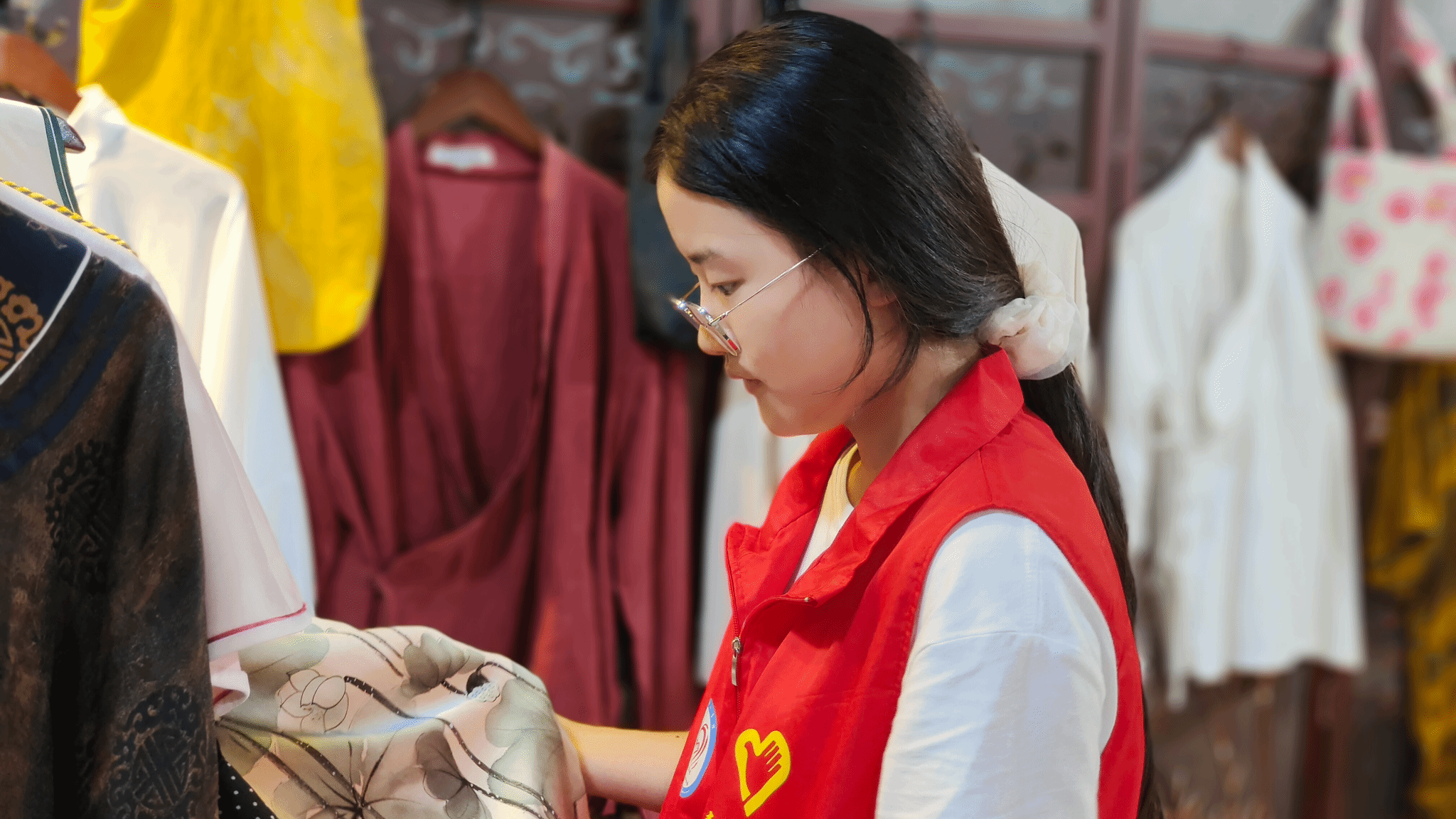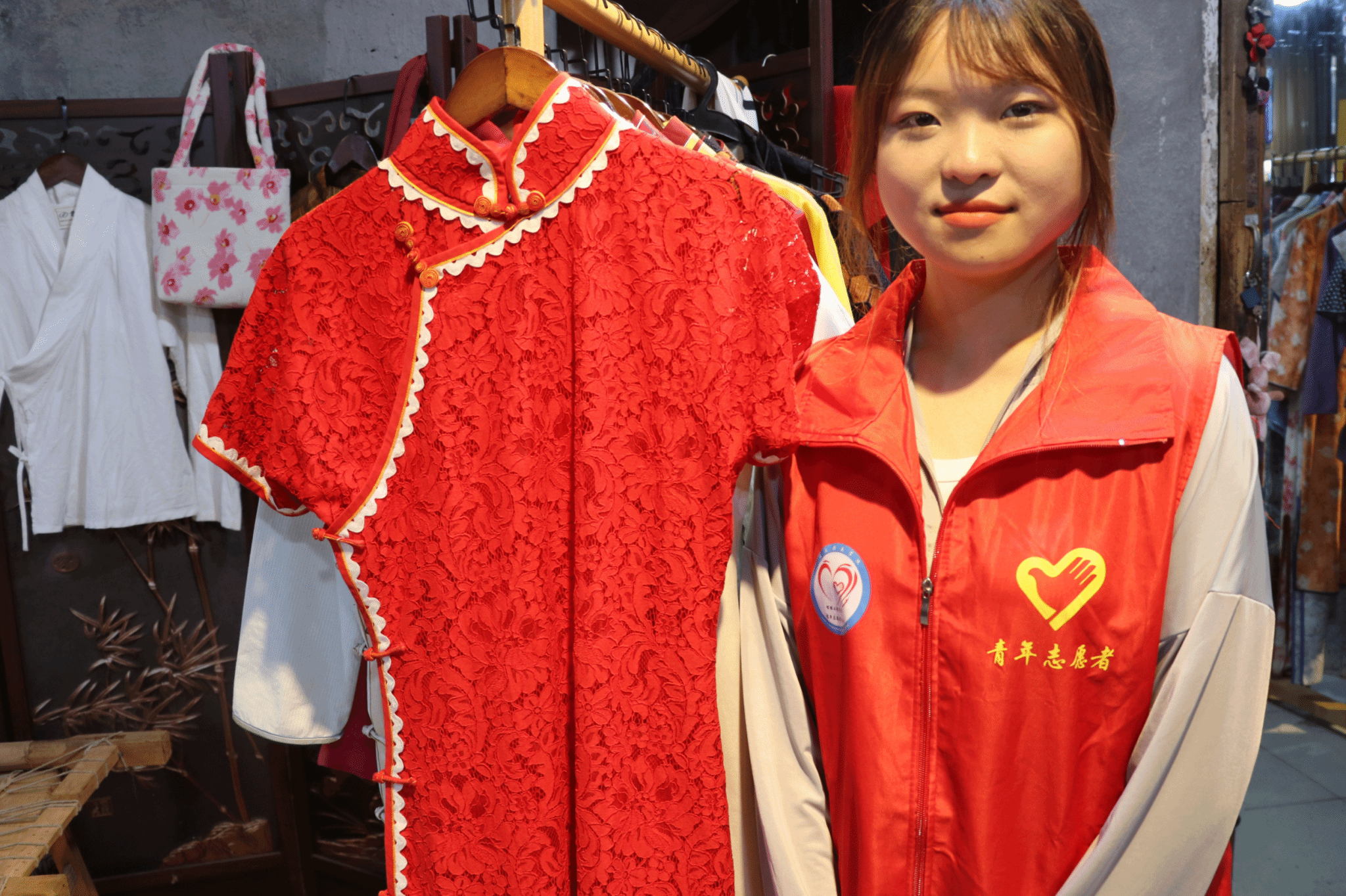 实践团在蒋老师的带领下,参观旗袍博物馆、参与旗袍制作、体验旗袍韵味。
